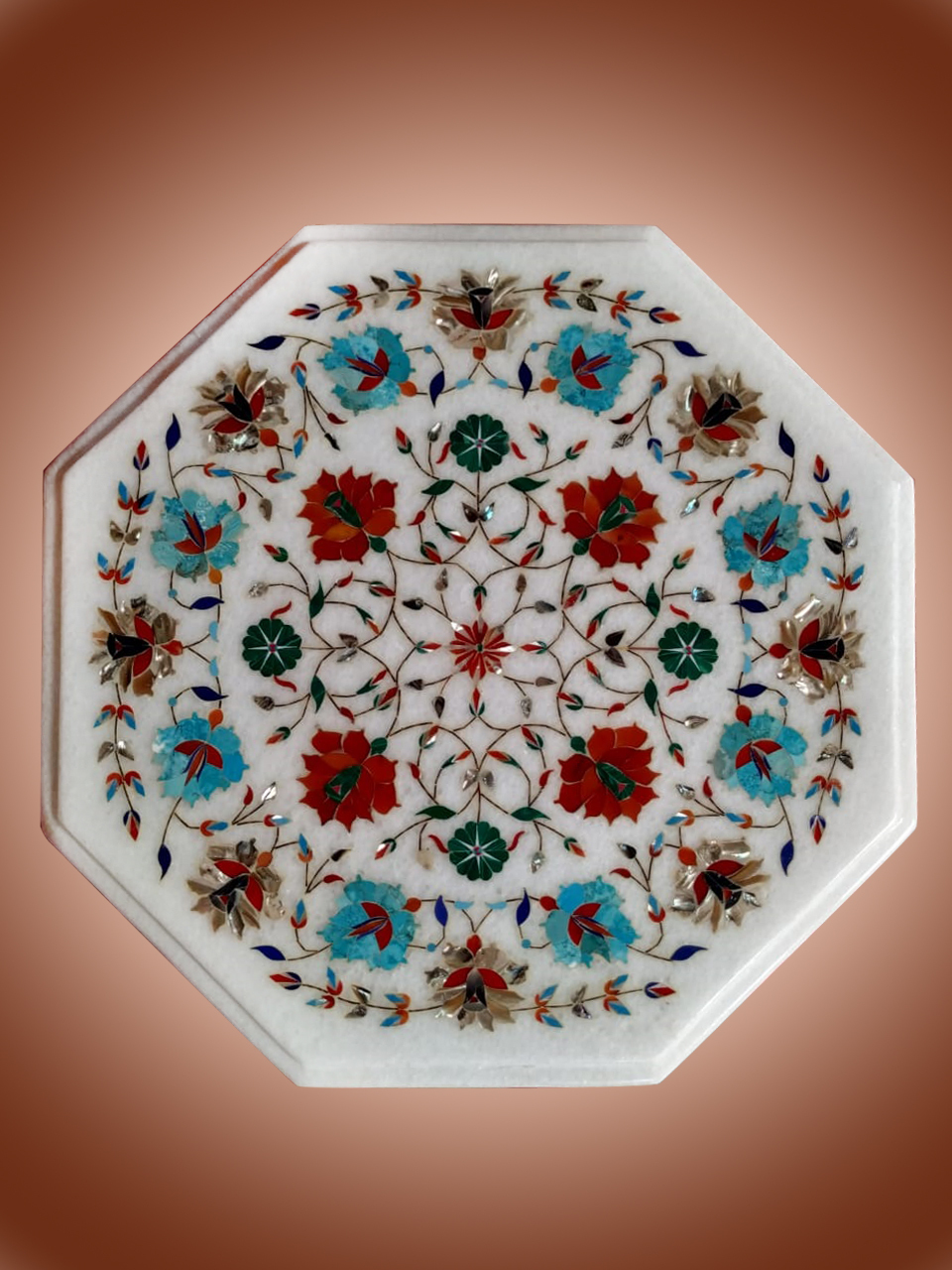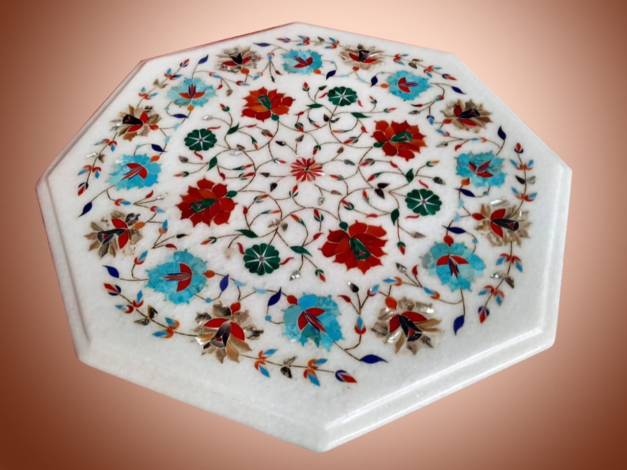 Size: 15"x15" Inch Material: Marble & Semi Precious Inlay Stones Shape: Octagon