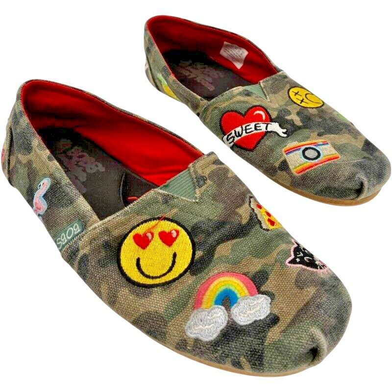 - Skechers BOBS women's Plush Perfect Patches Flat Size 6.5 w/Fun Emoji Patches
