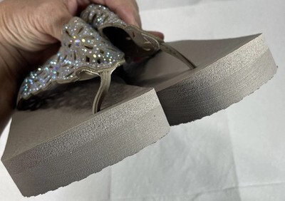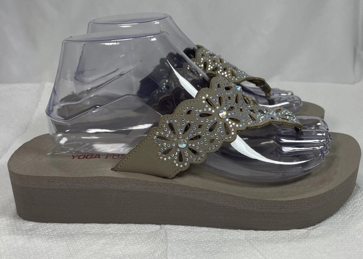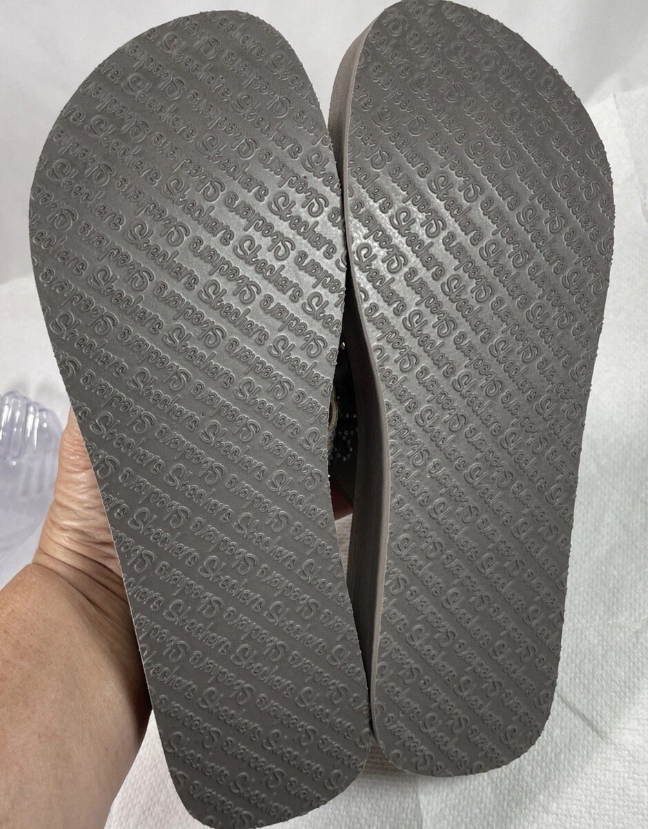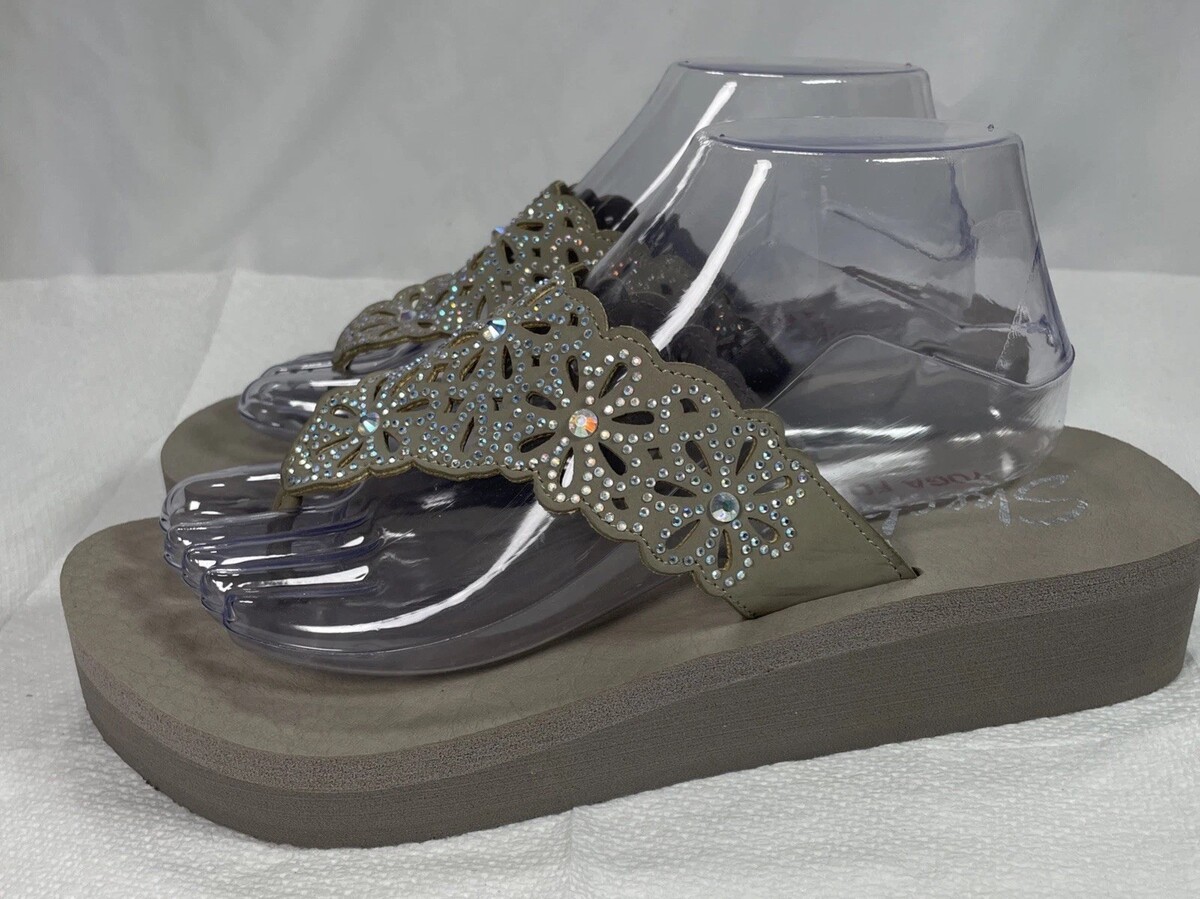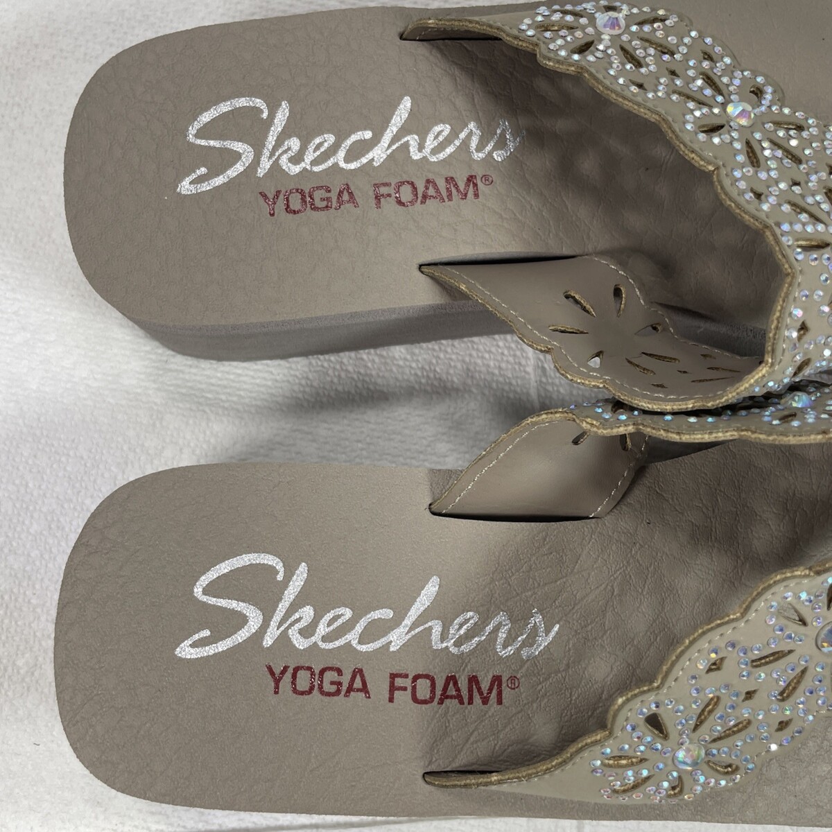 - Skechers Sandals Womens 9 Yoga Foam Casual Slip On Wedge Thong Flip Flops Gray