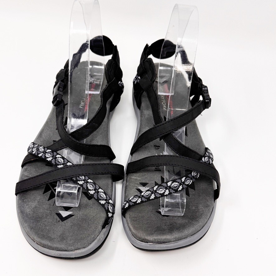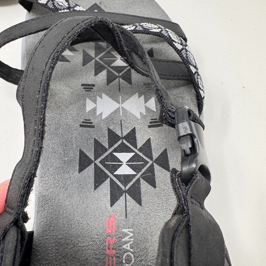- Skechers Womens Memory Foam Black Gray Criss Cross Sandals Size 10
