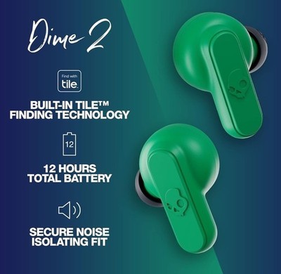 - Skullcandy Dime 2 (S2DBW-P750) Bluetooth Wireless In-Ear Headphones - Green