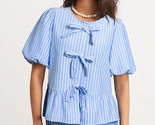Sky Blue Striped Bowknot Detail Puffy Sleeve Top and Shorts 2Pcs Set