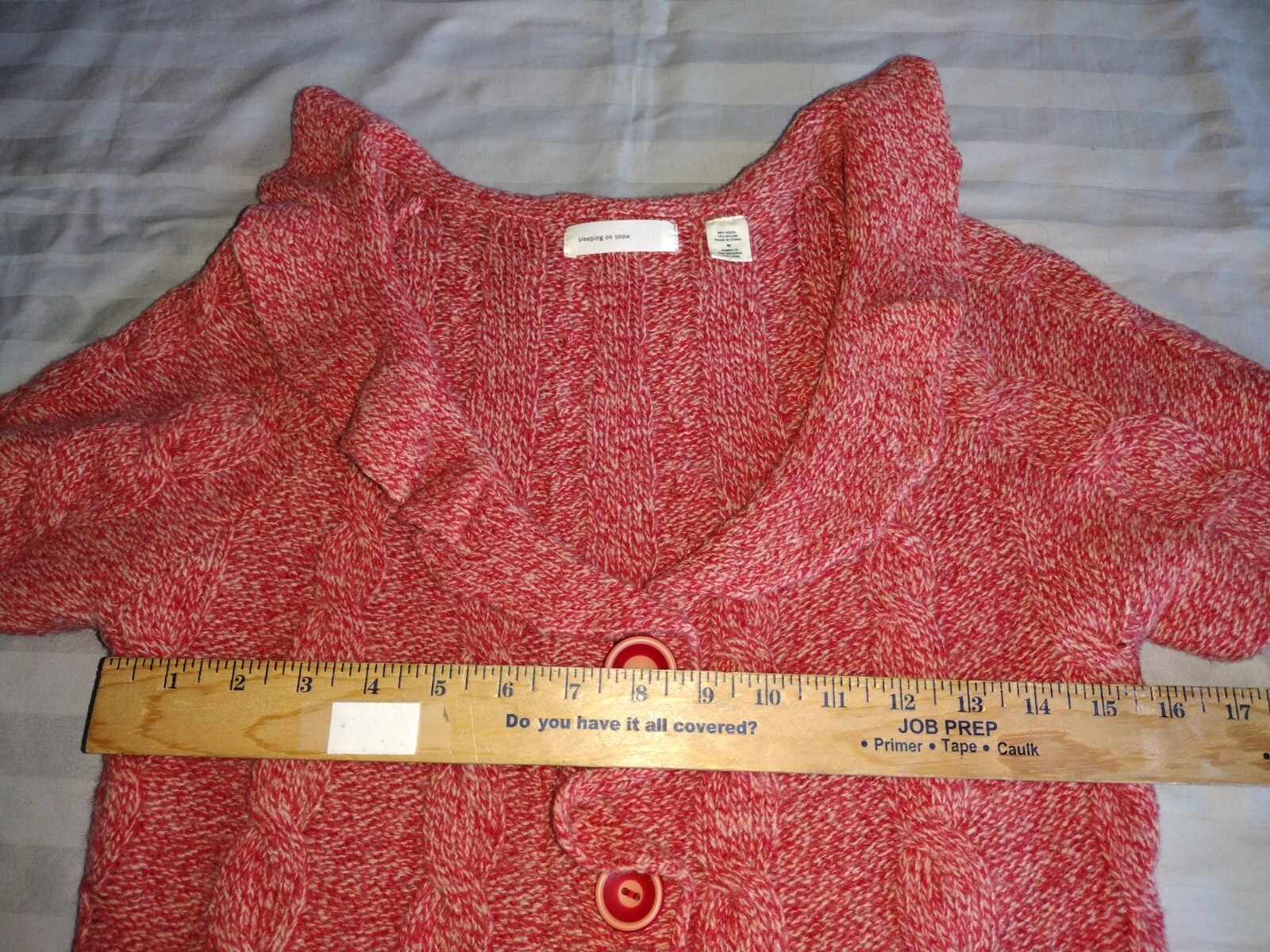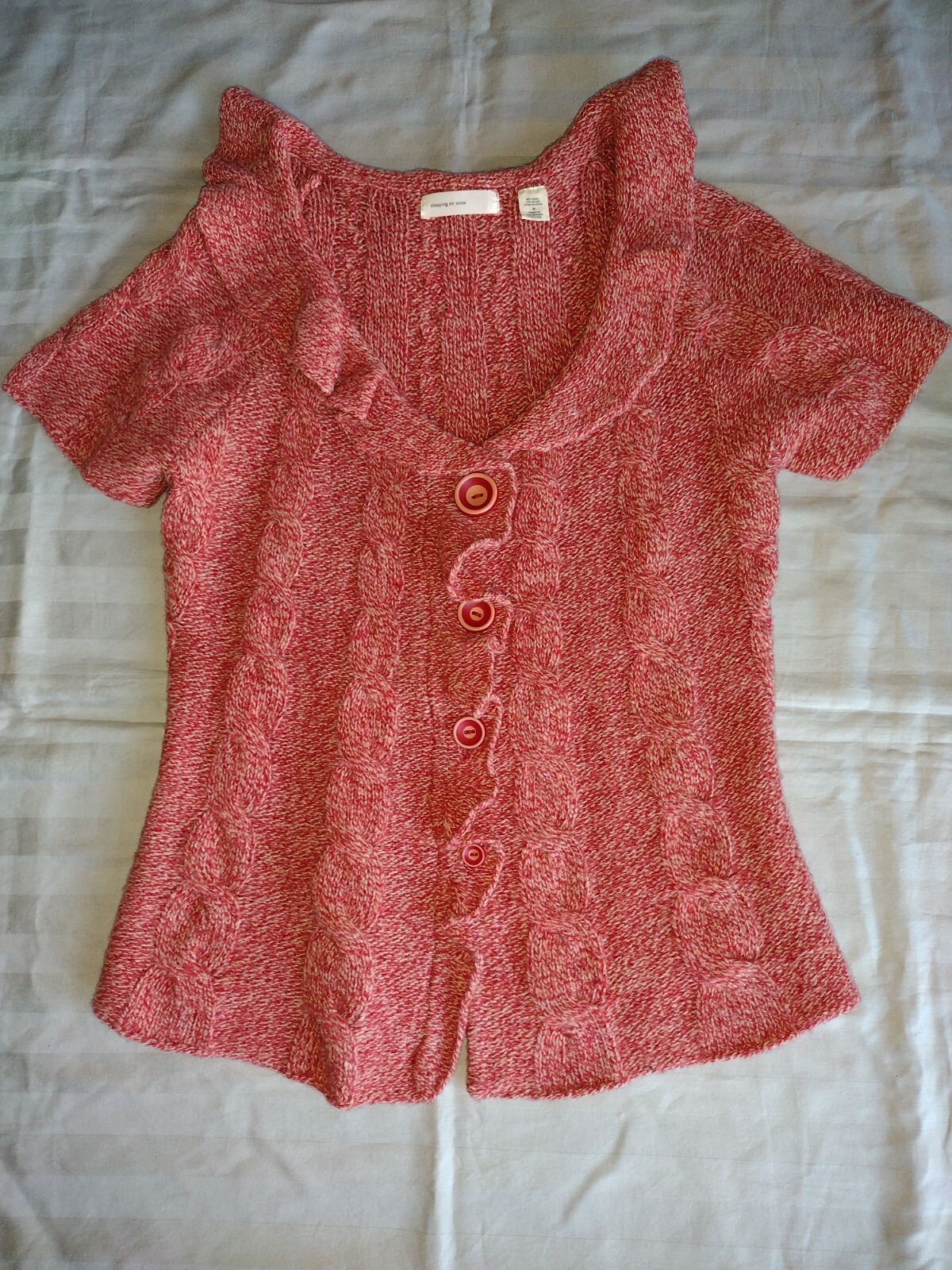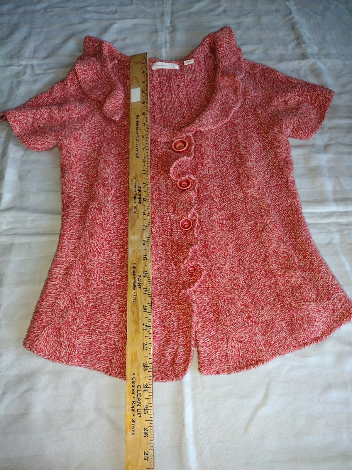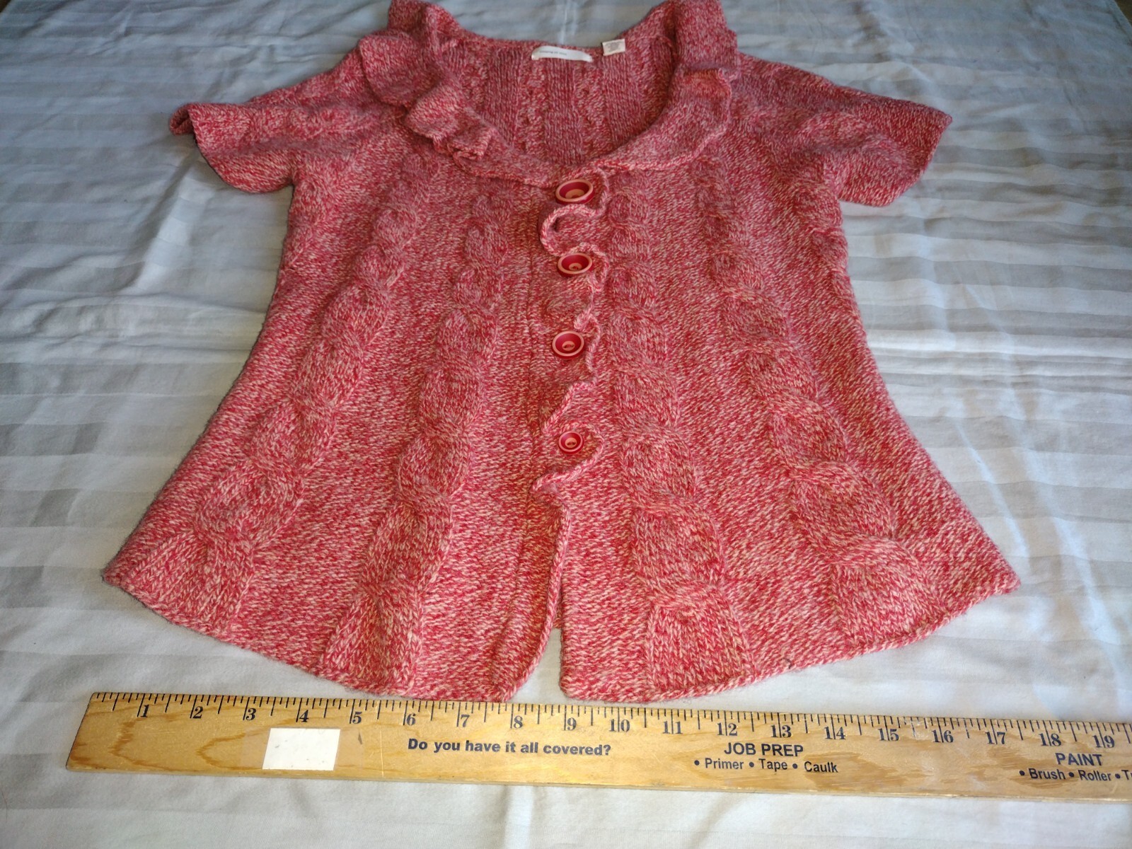 - Sleeping on Snow Women Red Cardigan Sweater Short Sleeve Ruffle Wool Blend M EUC