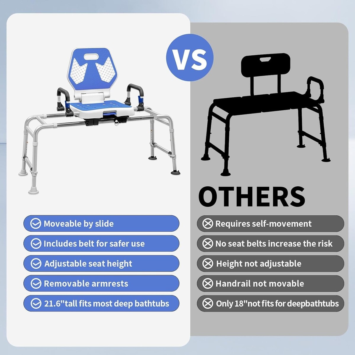 - Sliding Shower Chair Swivel Tub Transfer Bench with Backrest and 400lbs Capacity