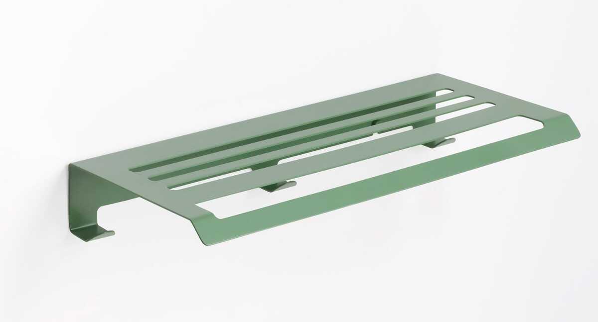Slim towel shelf with hooks. Colored towel rack.