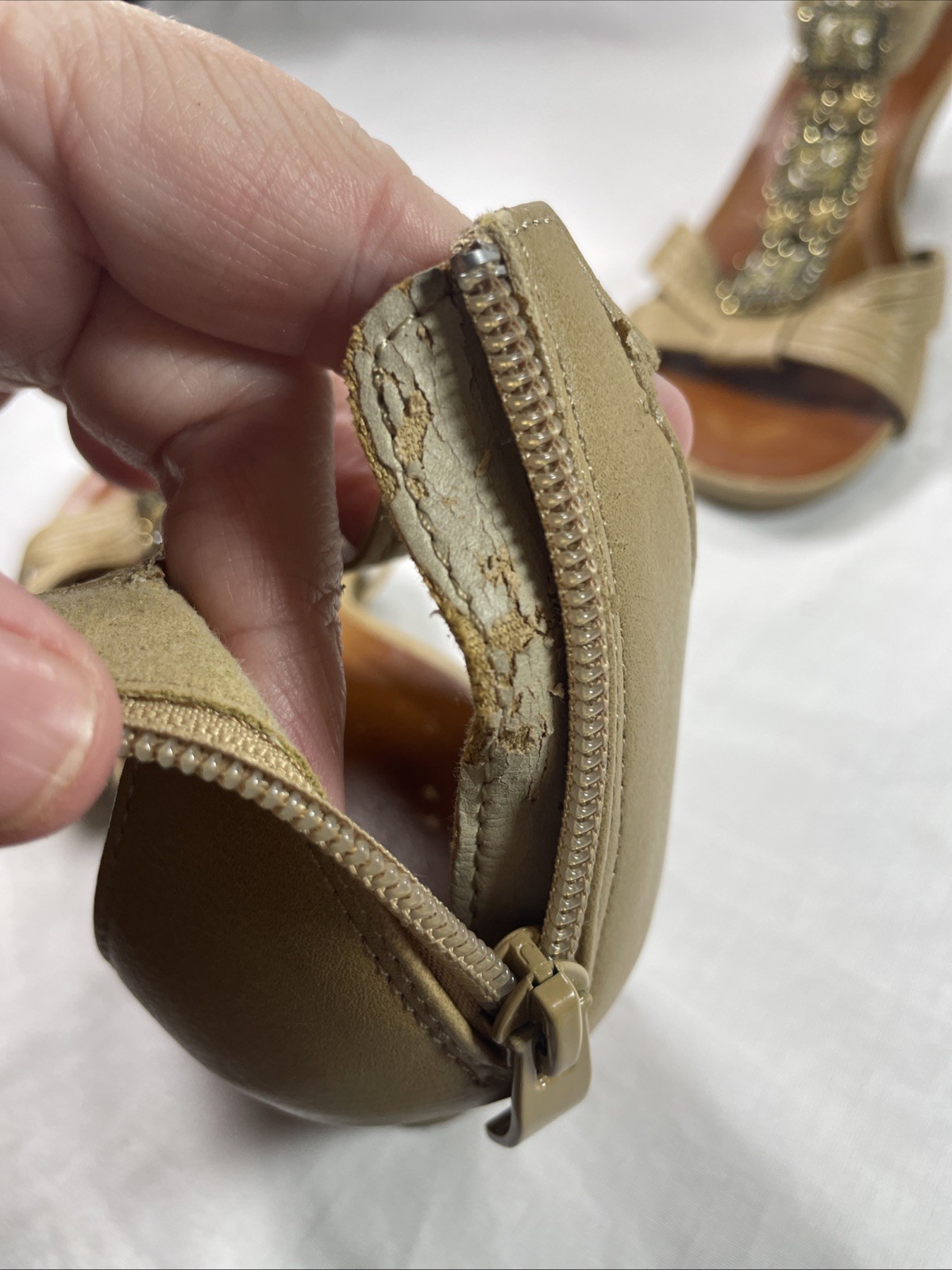Pre-owned cute sandals. They are an older pair so they do have some flaking on parts of the shoe? see pictures. Otherwise cute and still have some good ware on them.