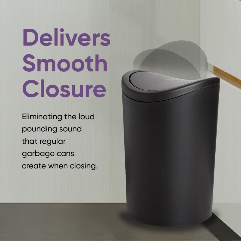 Soft close lid - Unlike any ordinary mini trash can, Superio garbage with lid closes slowly and silently, eliminating the loud pounding sound that regular garbage cans create when closing. A great solution for your home waste management!