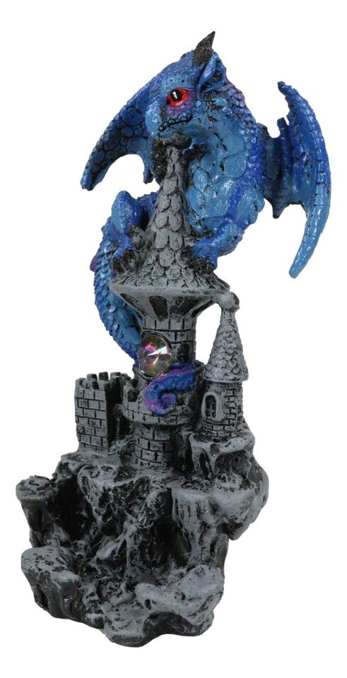 - Small Blue Guardian Dragon Protecting Rhinestone Rock Crystal Castle Figurine