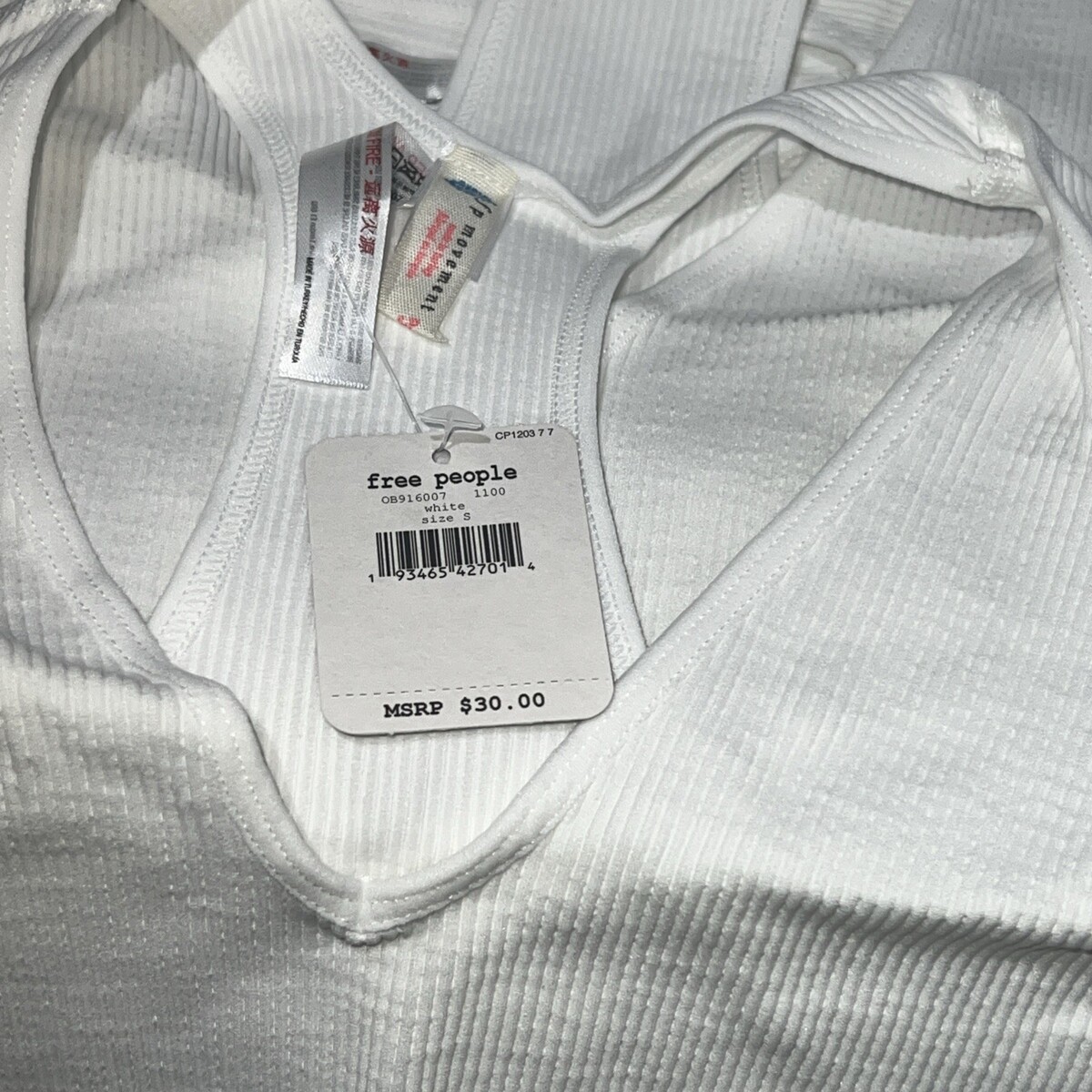 - Small Free People Movement Free Throw Crop Bra Top White BNWTS