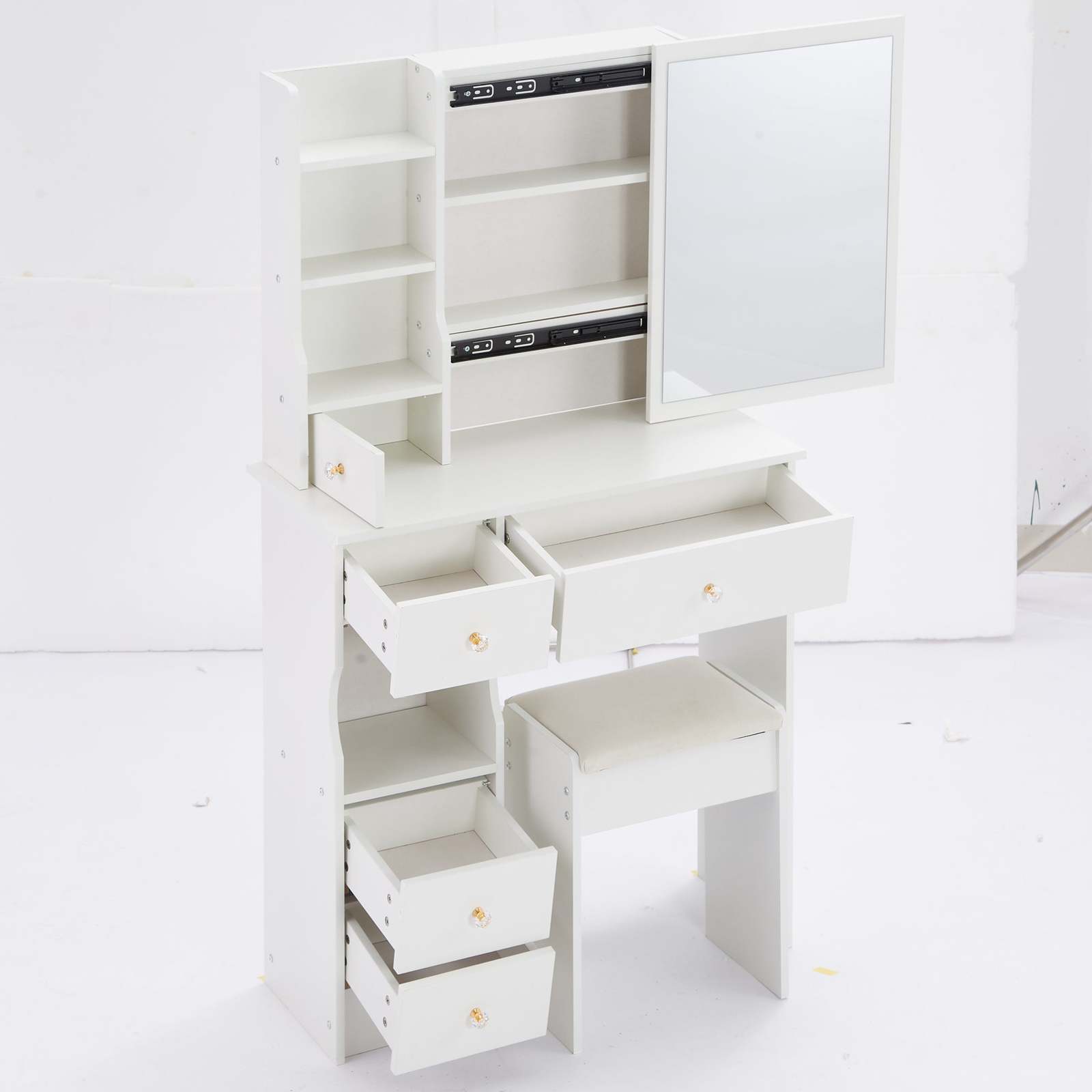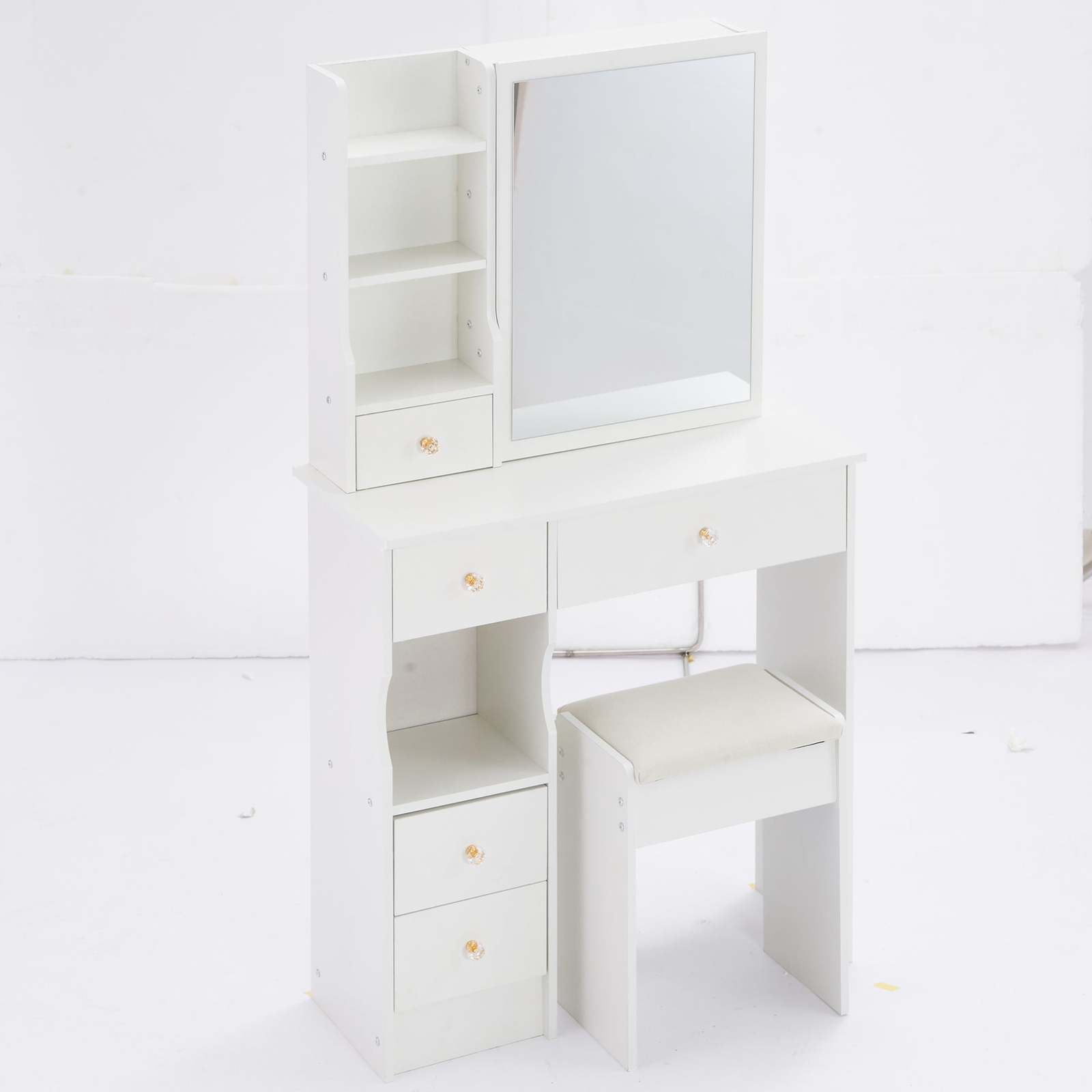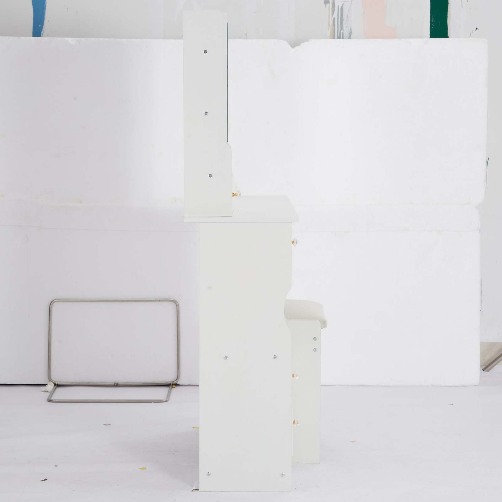 [Includes a padded dressing table stool]: The packaging includes a dressing table and a padded stool. You will no longer need to make additional purchases. This will greatly save you time and delivery cost.