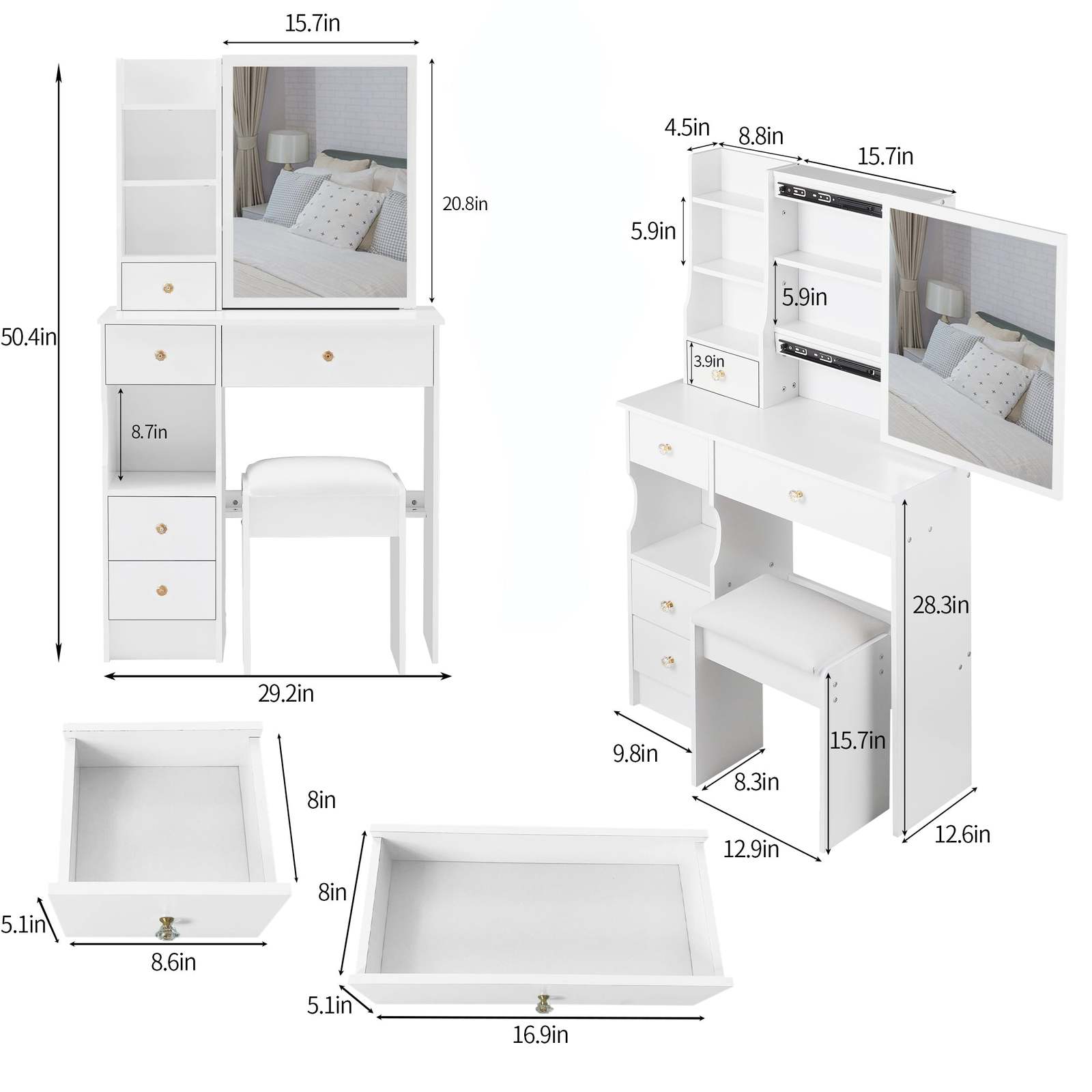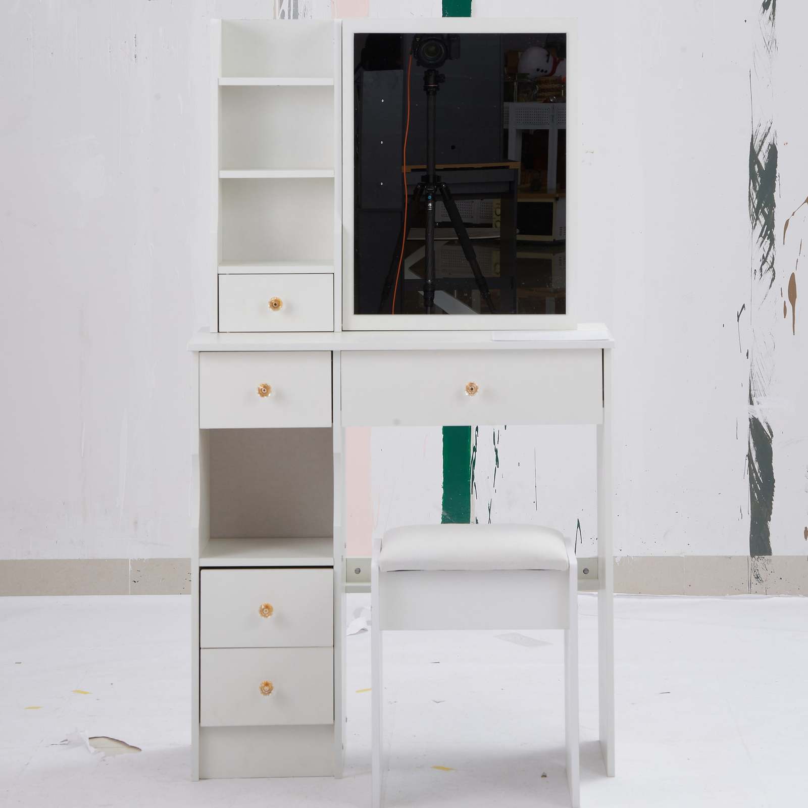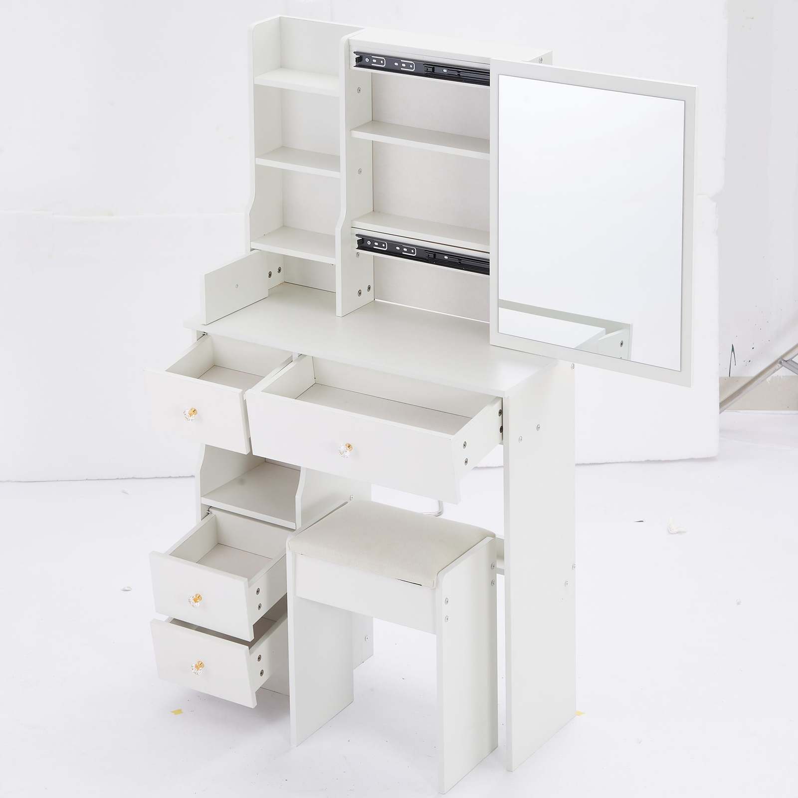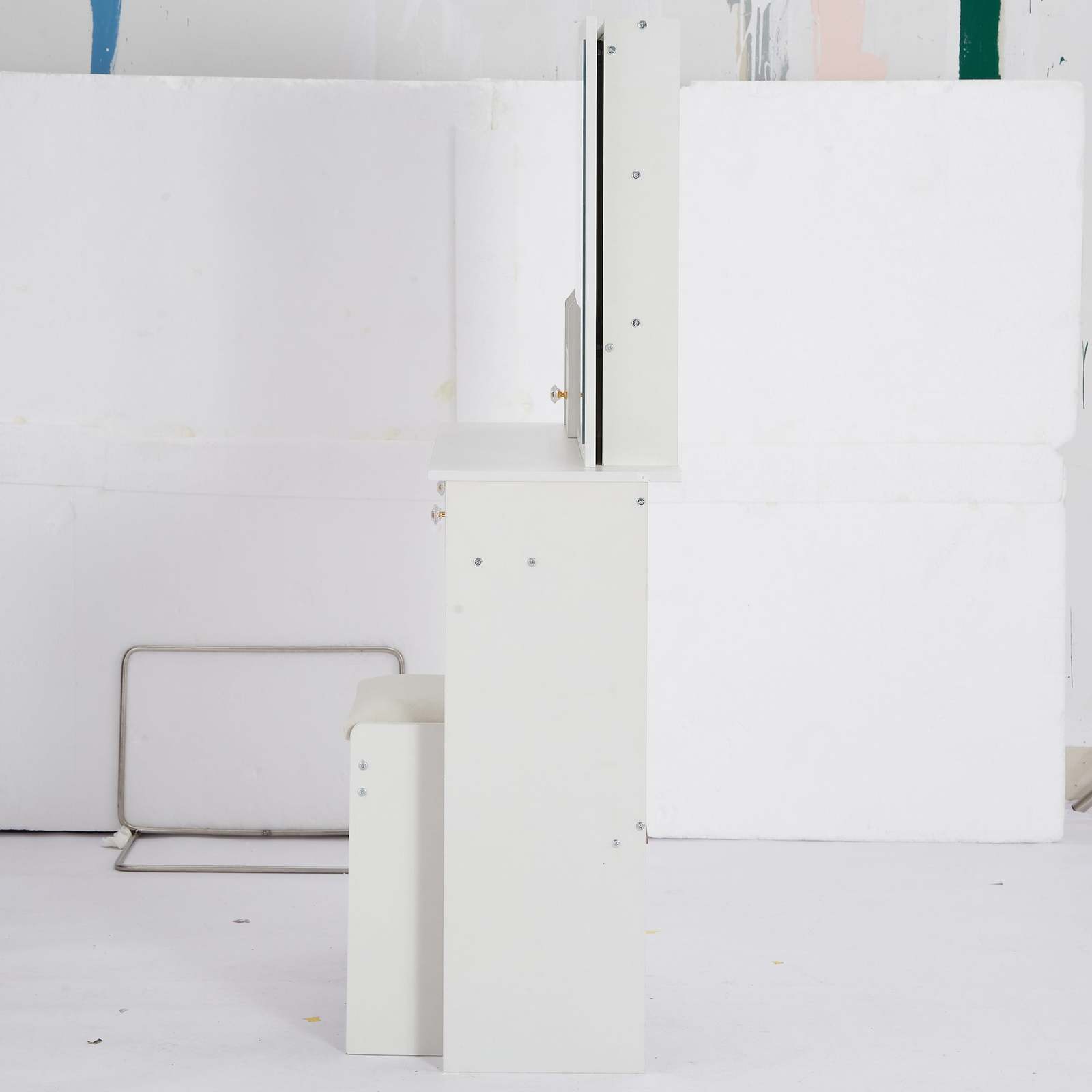 [Includes a padded dressing table stool]: The packaging includes a dressing table and a padded stool. You will no longer need to make additional purchases. This will greatly save you time and delivery cost.
