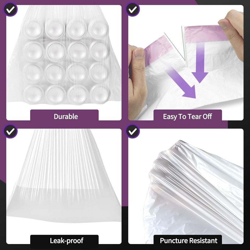 Tear Resistant: Our 4 gallon trash bags crafted from pure HDPE material, they boast strong puncture and tear resistance, can make the mini garbage bags stronger, avoid leakage.