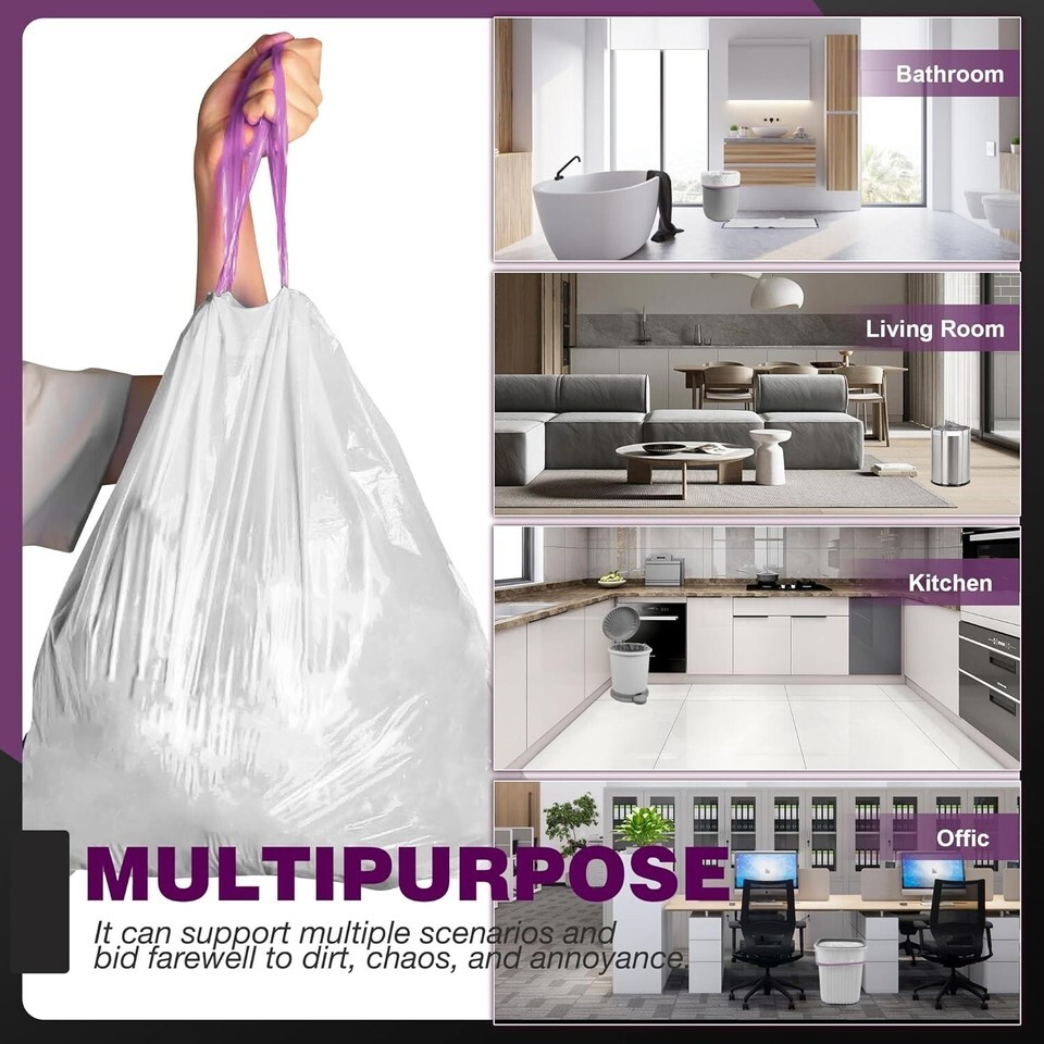 Handy Drawstring:The small trash bags are designed with durable drawstring Ties, easily remove garbage and keep your hands clean, the drawstring 4 gallon trash bags are easy to lift and throw away.