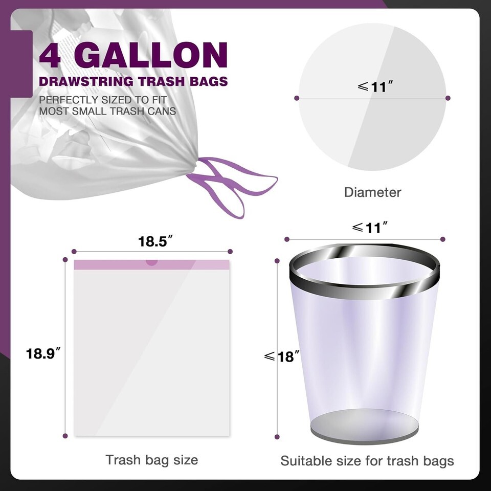 - Small Trash Bags 4 Gallon - Drawstring Small Garbage Bags Mini 45 Count