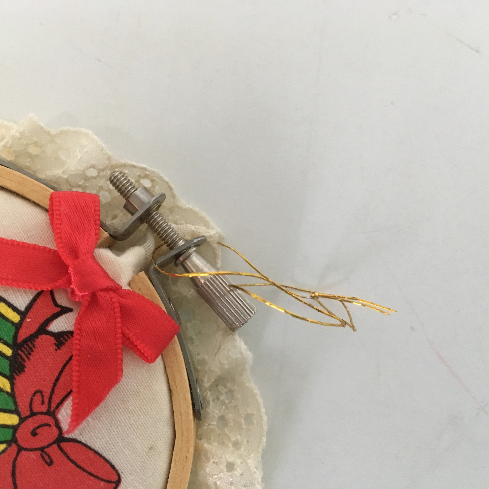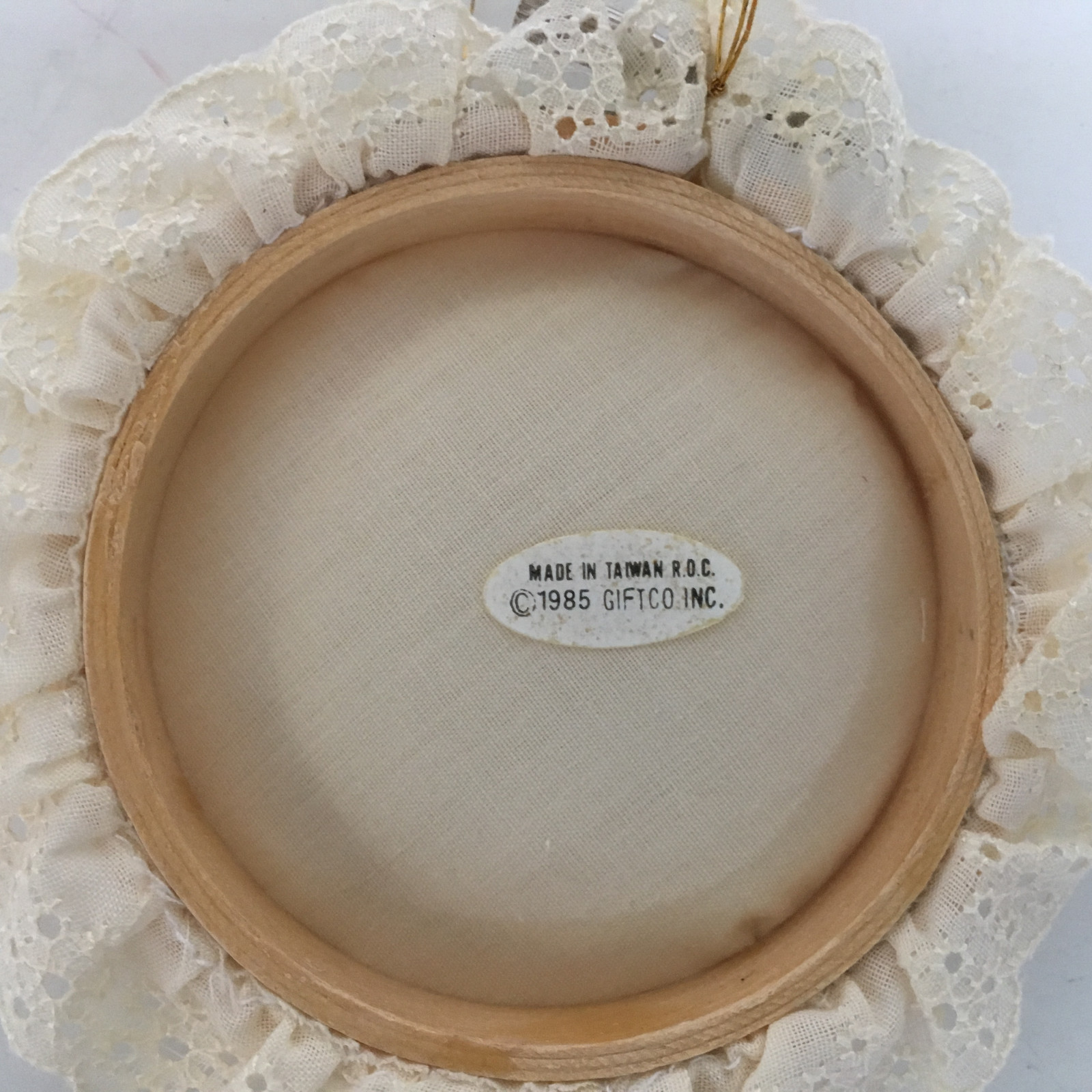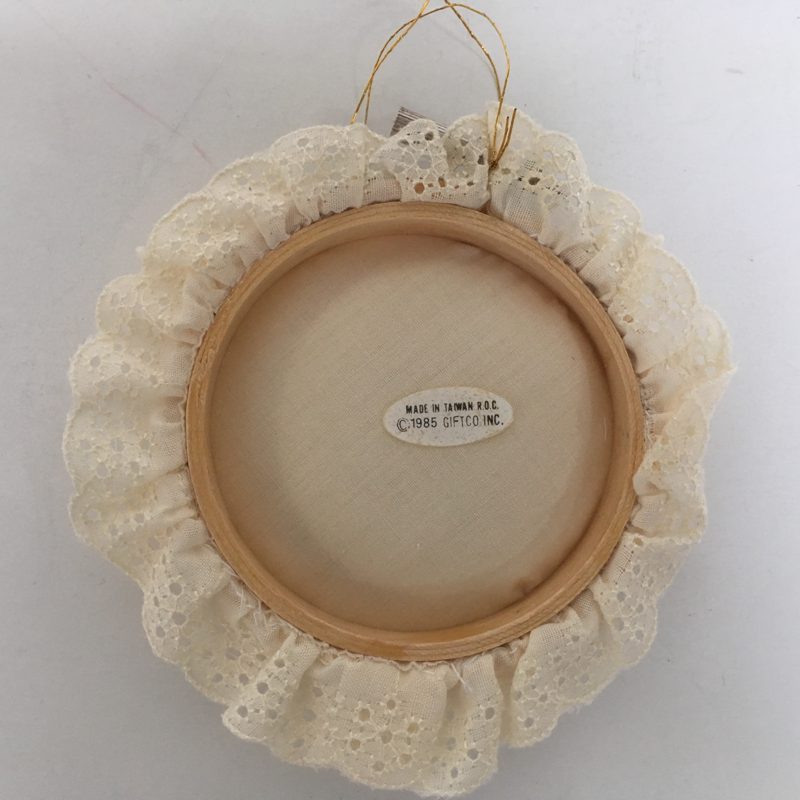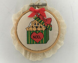 - Small vintage embroidery hoop fabric Christmas ornament puppy in noel gift box