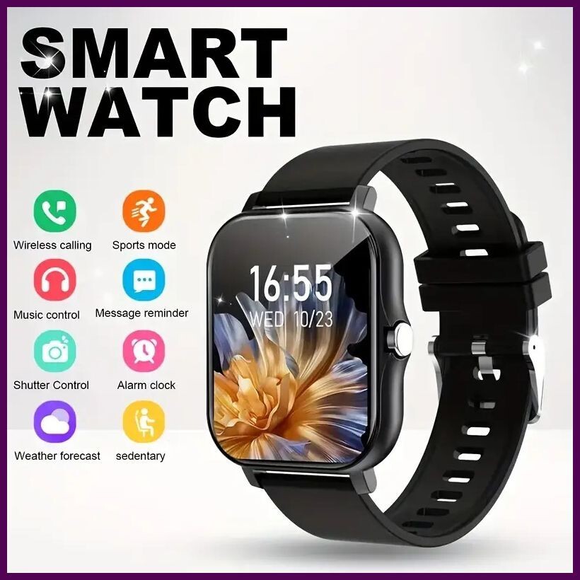 2025 New Smart Watch with 240x240 TFT Display, USB Charging, Alarm, Music Control, Weather Forecast, Call/Message, Fitness Tracker, Stylish Strap, Ideal Gift for Men Women, Sleek Design, Durable Strap