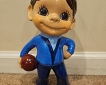 Smiley Boy 12'' Ceramic Statue Boy with Soccer/Basketball Vintage