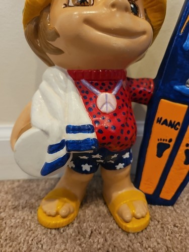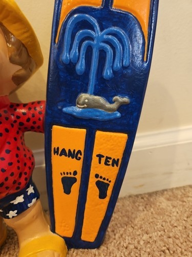 - Smiley Boy Surfer Surf Board Ceramic, Vintage 1970s Era, 11''