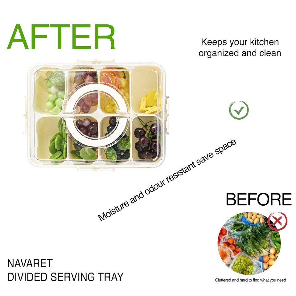 Introducing the NAVARET Divided Serving Tray with Lid and Handle, an innovative solution for all your food storage and serving needs.