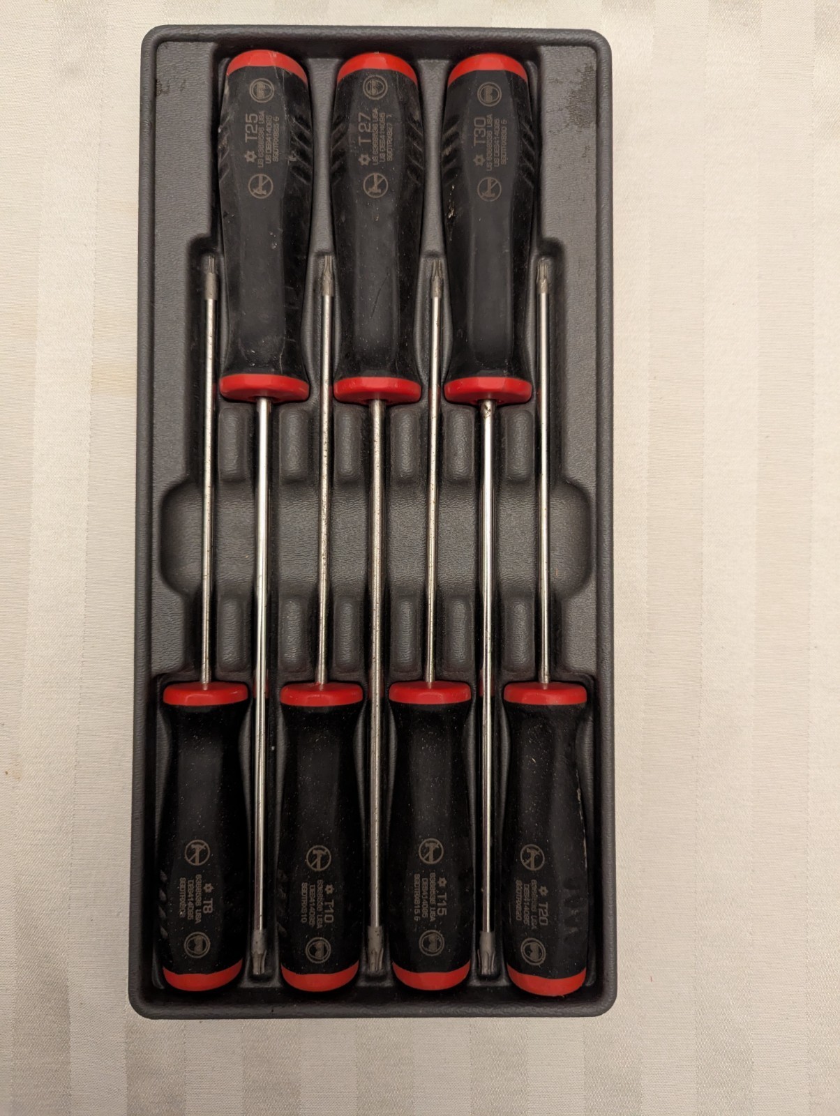 - Snap On Tools USA 7pc Long Torx Instinct Screwdriver Set Red T8-T30 SGDTXL70BR
