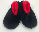 NWT, New With Tags. Snoozies Sales Samples. Comfortable , soft, with non skid soles. Comfortable, warm fun fuzzy black with red interiors. Fun slippers with non-skid soles.