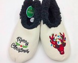 Snoozies Men's Slippers Merry Christmas Plaid Reindeer Large 11/12 Off White
