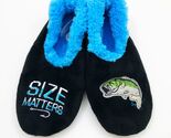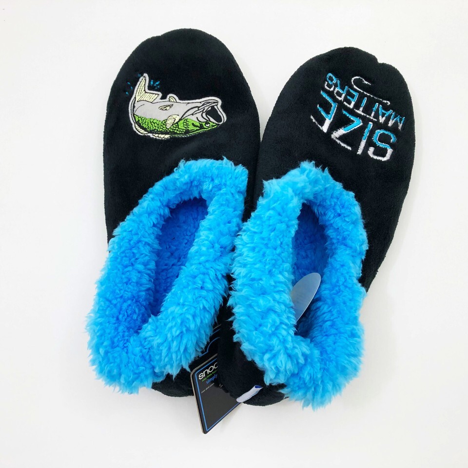 NWT, New With Tags Sales Samples. Men's Snoozies Pairables slippers size Extra Large 13. Great fun slippers with "Size Matters" embroidered on one slipper and a jumping fish on the other slipper. Great gift for the fisherman in your life. Fun comfortable slippers with non skid soles.