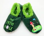 NWT, New With Tags Sales Samples. Men's Snoozies Pairables Men's slippers size Small 7/8. Great Snoozies comfy slippers for the golfer in your life. These dark green slippers have embroidered "The 19th Hole" on one slipper and the golfer holding his drink while standing at the 19th hole, the PUB. Fun slippers with non skid soles.
