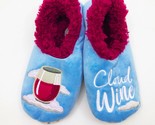 Snoozies Wine Cloud embroidered on one slipper over a small white cloud and on the other slipper is an appliqued half full wine glass sitting on a cloud. Light blue with burgundy faux fur lining. The perfect gift for your wine loving friends. Or splurge and just get them for yourself. Indulge!