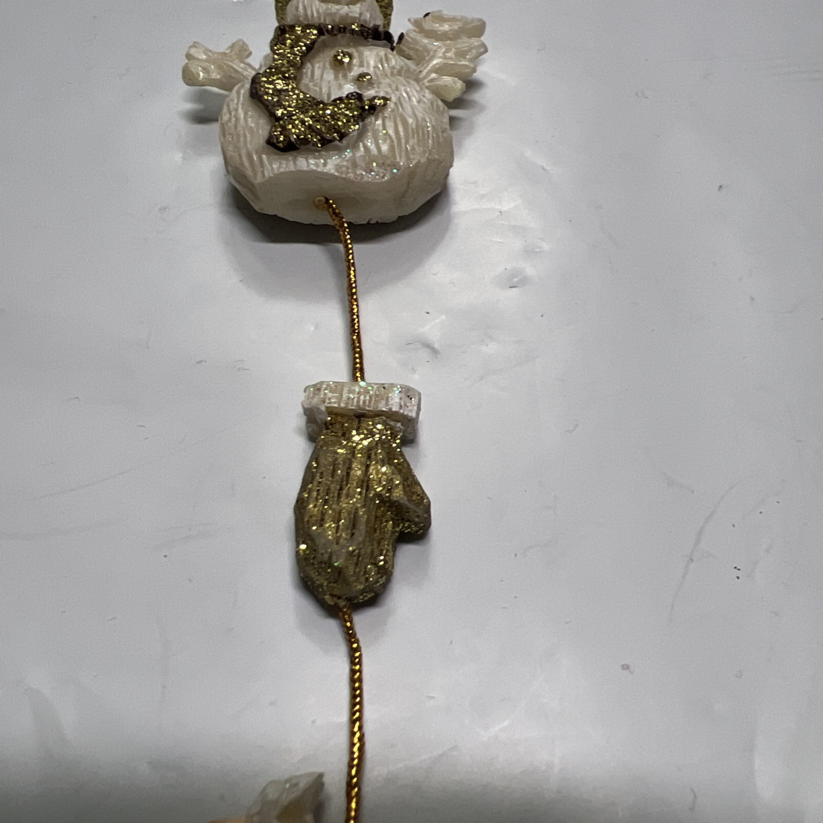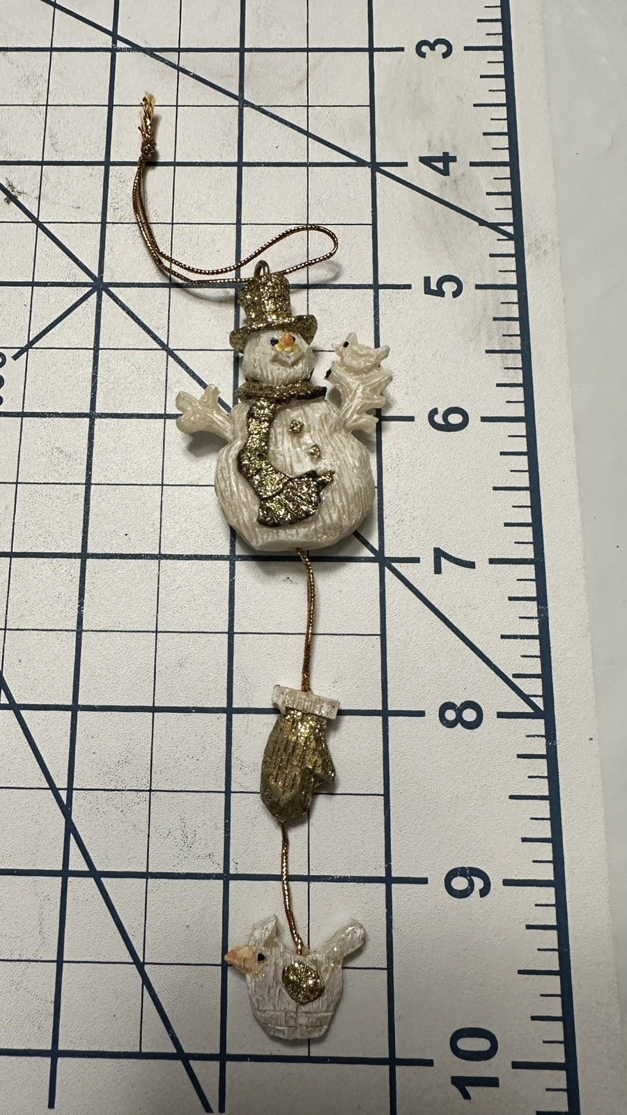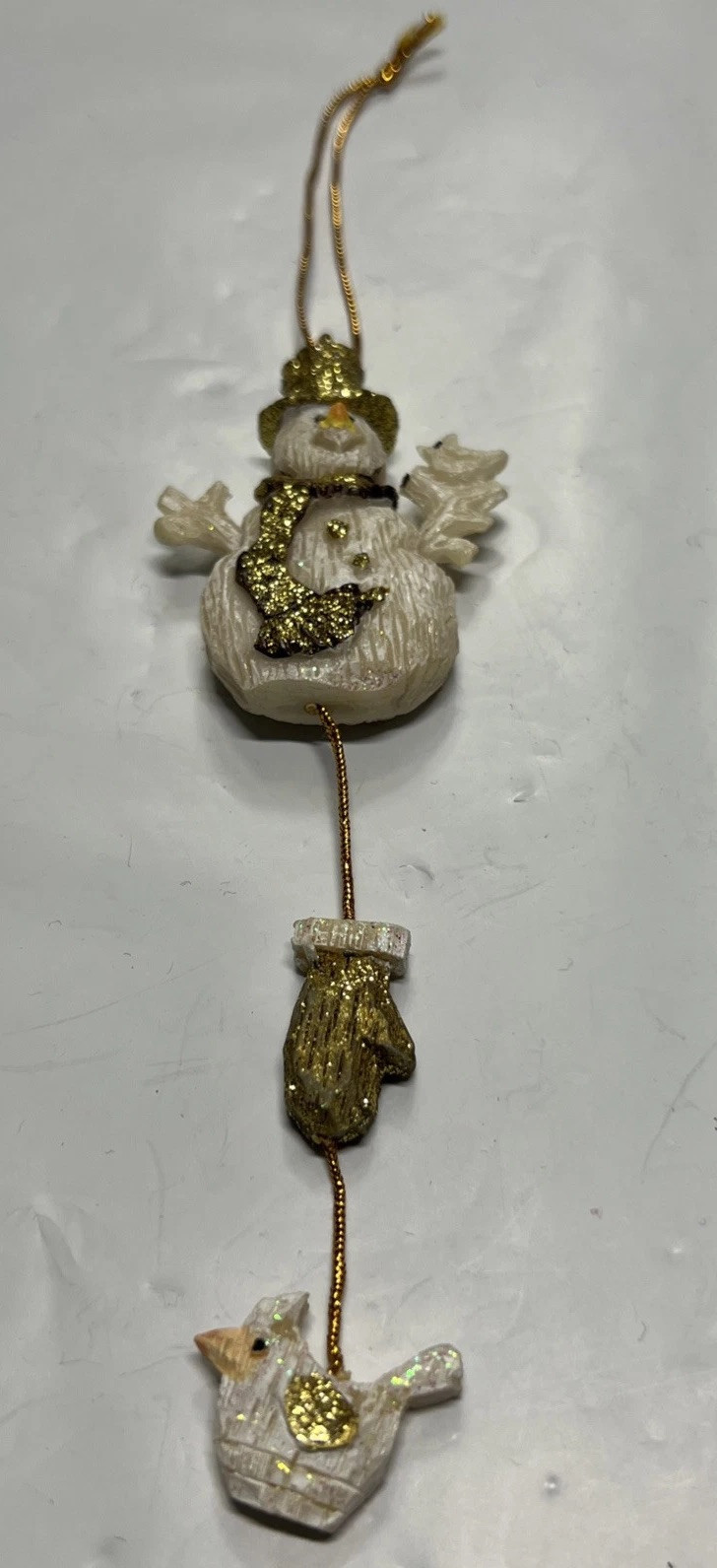 - Snowman Holding Bird Glitter White Gold Dangling Hanging Mitt& Bird ornament