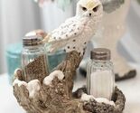 Ebros Snow White Owlet Owl On Snowy Branch Glass Salt Pepper Shakers Holder Figurine
