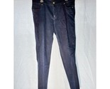 So Slimming by Chico's dark wash jeans in size 2.5 Regular. These flattering, stretchy jeans feature gold-tone studded detailing on the back pockets, a slim leg cut, and a supportive waistband designed to shape and smooth. Inseam measures approximately 41 cm. Stylish and comfortable?perfect for everyday wear.