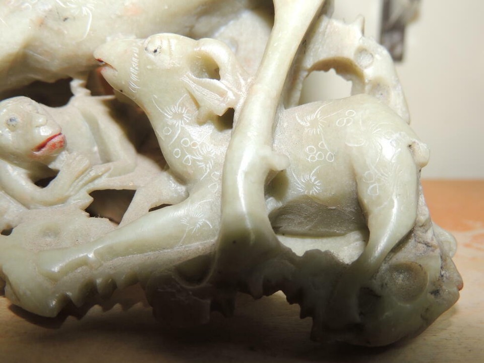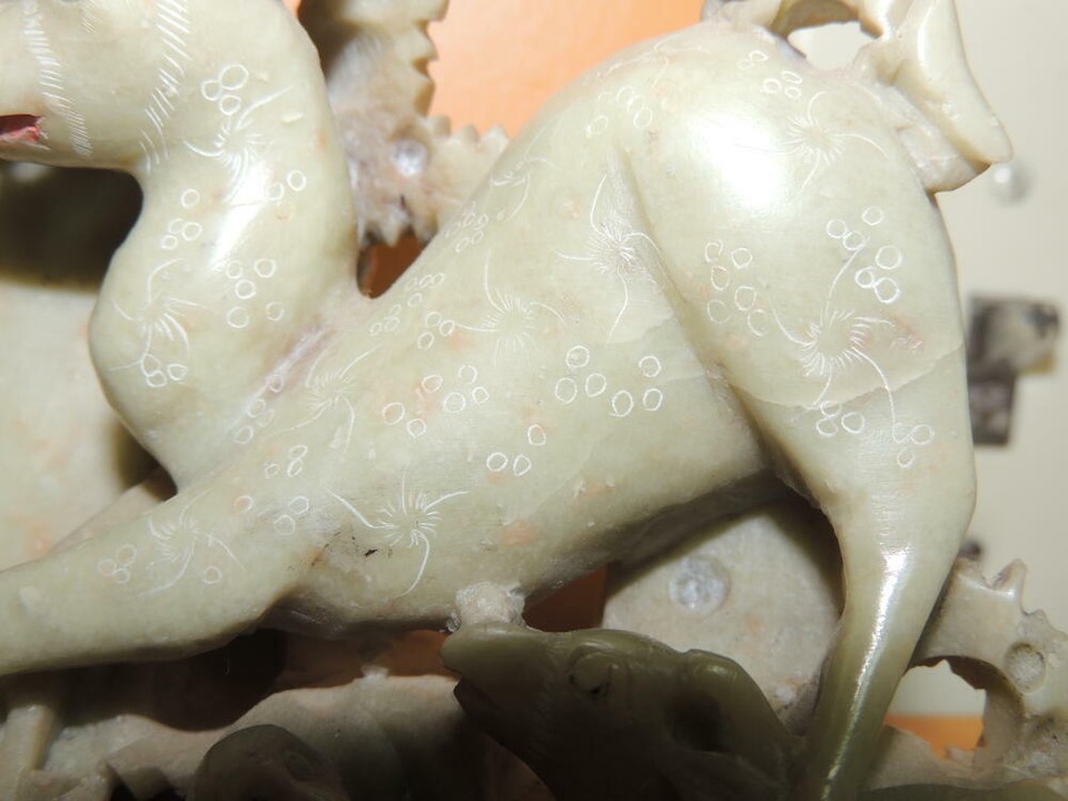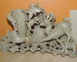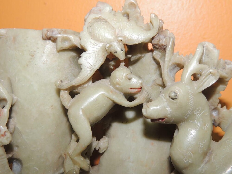 Soapstone 5.5"x9" Vase / Pen Holder Carved Relief deer monkey rooster bat etched