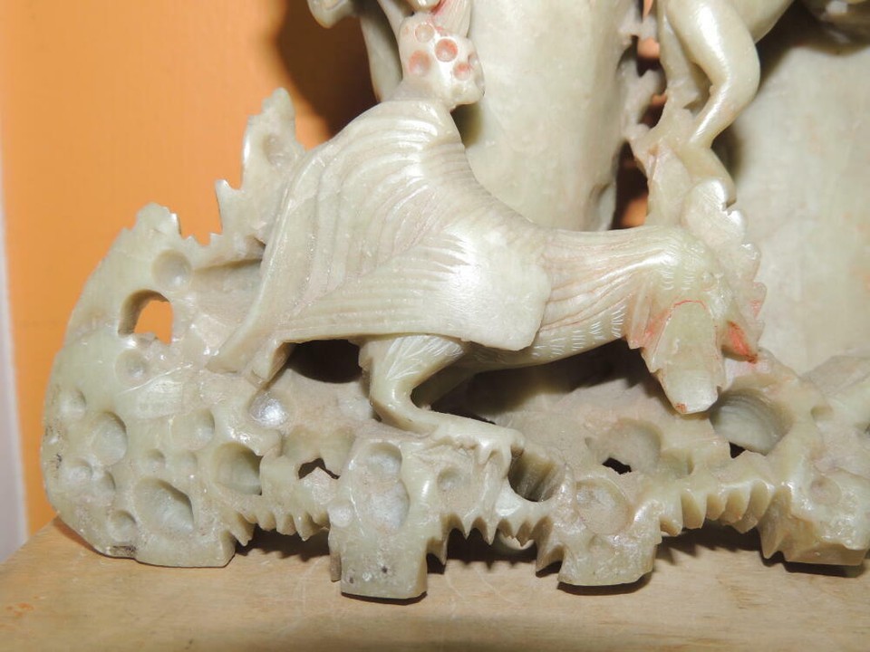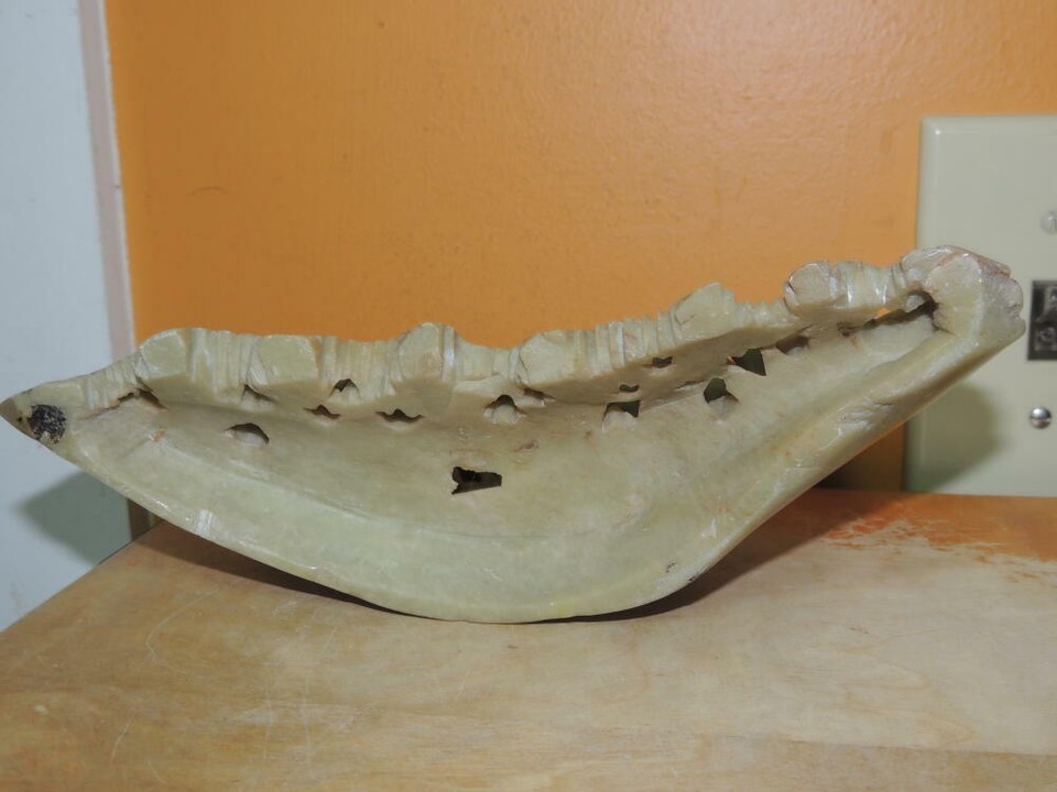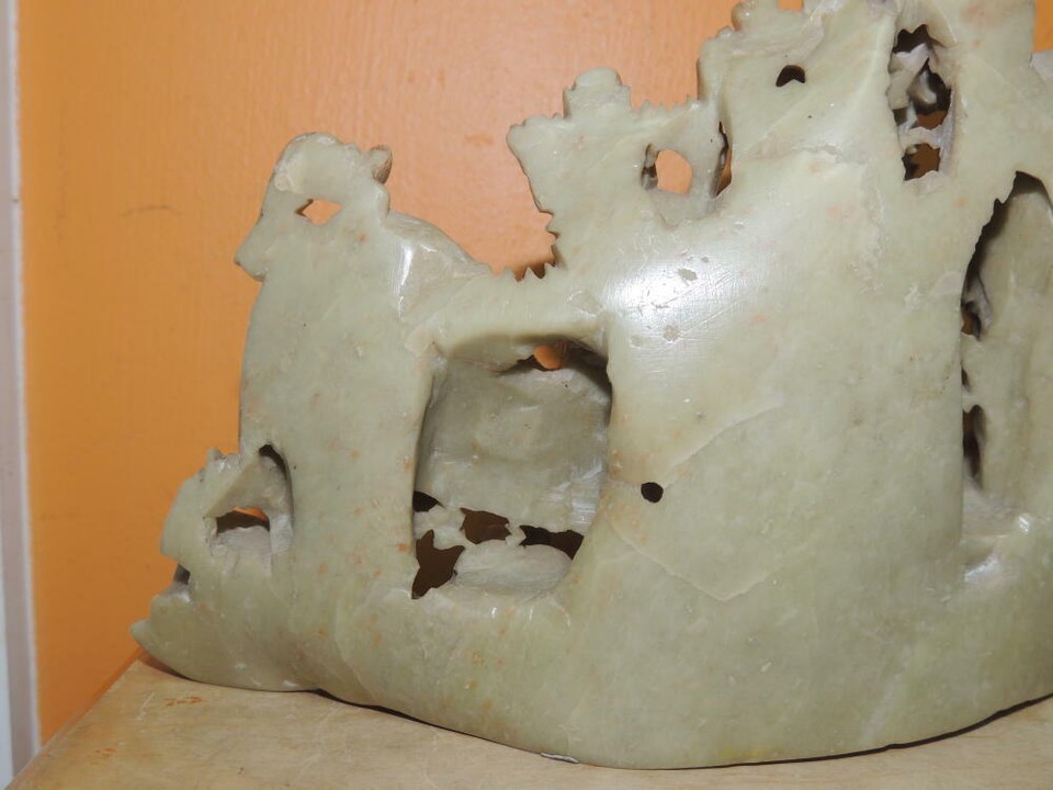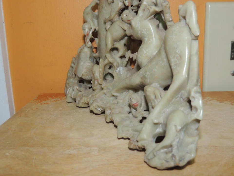 - Soapstone 5.5"x9" Vase / Pen Holder Carved Relief deer monkey rooster bat etched