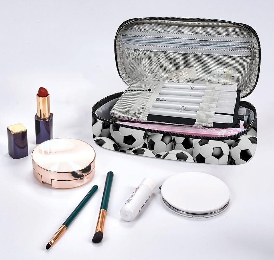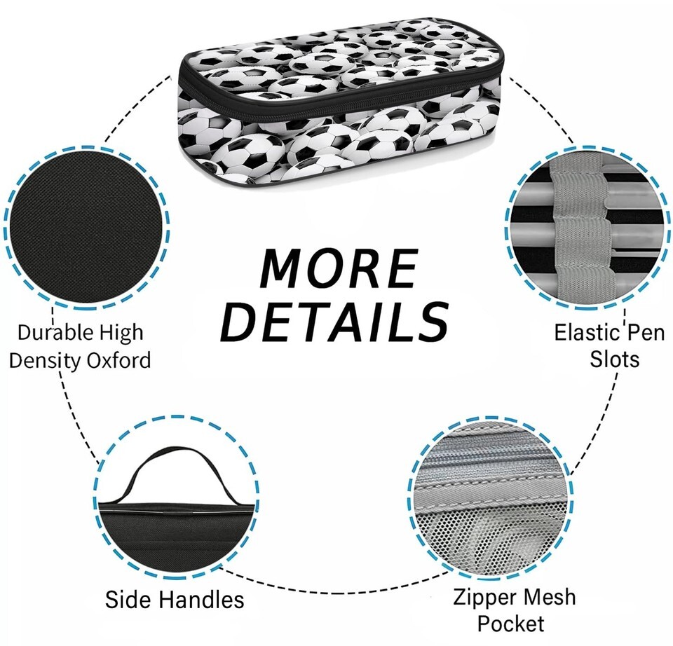 - Soccer Pen Holder Case Multifunction Storage Pouch with Zipper Large Capacity