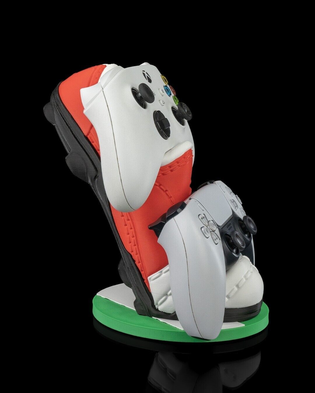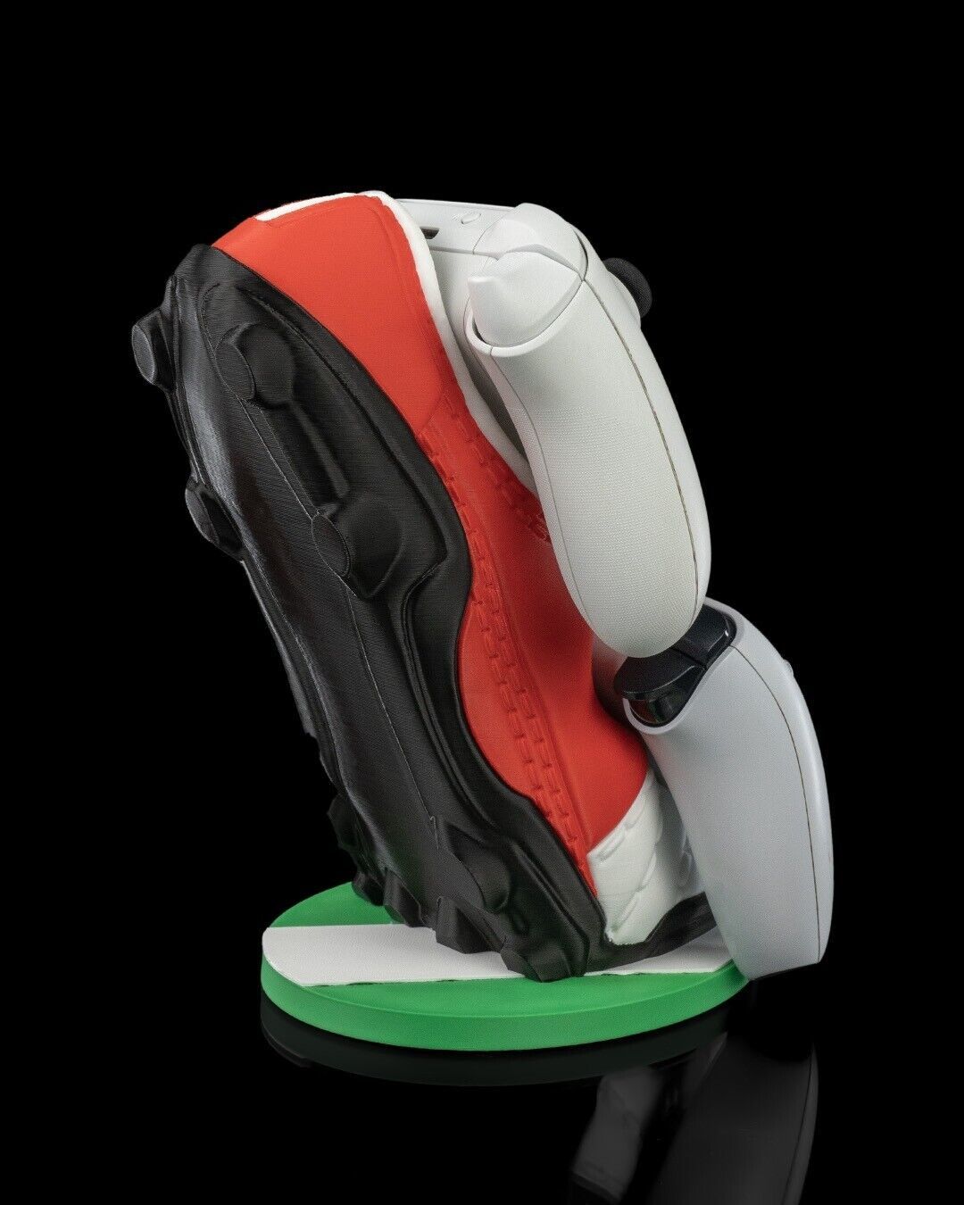 The soccer shoes controller holder is an innovative accessory designed for avid gamers and soccer enthusiasts alike. This product securely holds your gaming controller, ensuring that it is easily accessible and organized. Crafted from durable materials, it features a sleek design that complements any gaming setup or sports gear collection. Ideal for those who enjoy both gaming and soccer, this holder enhances convenience and efficiency, making it a must-have for sports enthusiasts.