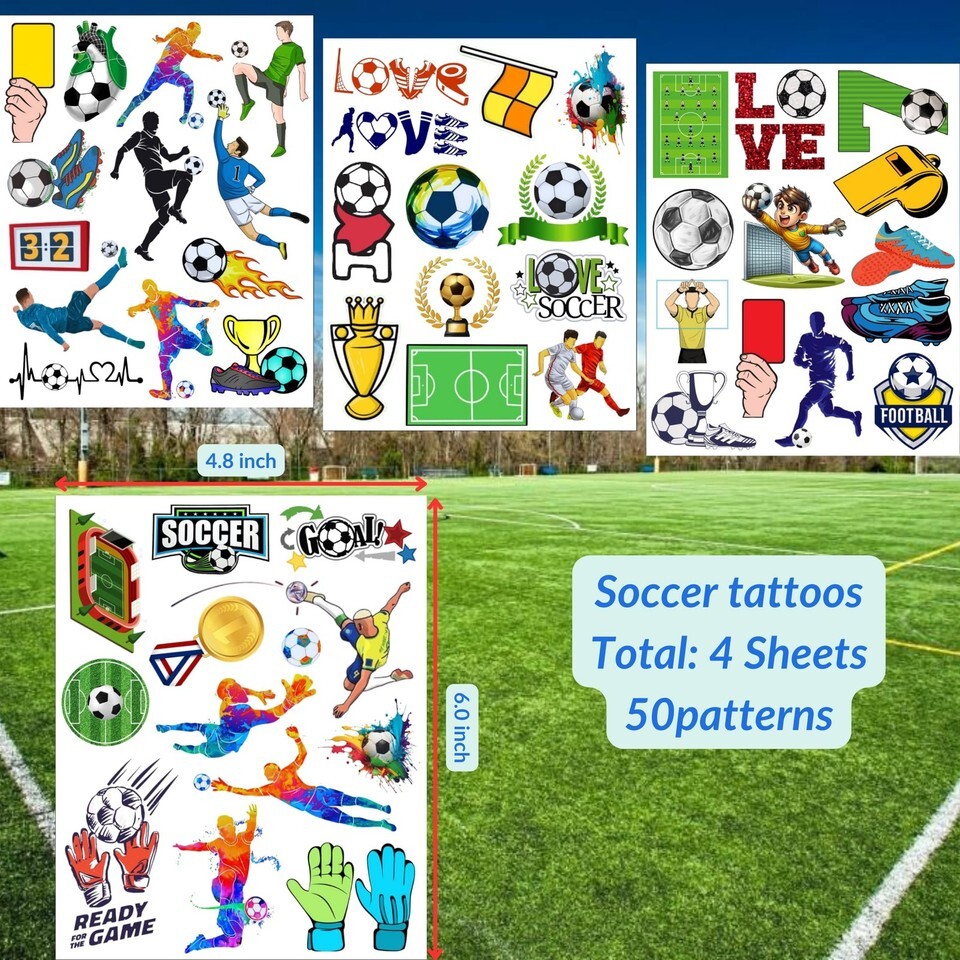 Brand: Vikaparkmaz. Product: Sport Tattoos For Birthday Decorations. Quality: 4 sheets, 50pieces. Theme: Soccer. Gift idea for any occasion.