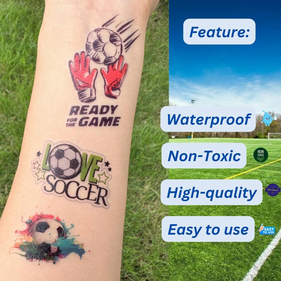 Durable and Waterproof: Tattoos are resistant to sweat and water, ensuring they stay put during intense soccer matches or playtime.