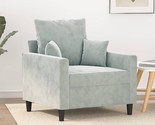 Soft velvet: Velvet is a soft, luxurious fabric that is recognized by its dense pile of evenly cut fibers that have a smooth nap. Velvet fabric features a distinctive soft feel, making it comfortable to touch. Sturdy and stable frame: The metal frame of the sofa chair ensures sturdiness and stability. Comfortable seat experience: The armchair is highly comfortable with the thickly padded seat, armrests and back pillow. Eye-catching design: Featuring a simple yet modern design, this sofa is meant to be an eye-catcher in your room. Color: Light gray Material: Velvet (100% polyester), metal, textilene Filling material: Foam Overall dimensions: 30.7" x 30.3" x 31.5" (W x D x H) Seat width: 23.6" Seat depth: 26" Seat height from the ground: 16.1" Armrest height from the ground: 22.2" Max. load capacity: 242.5 lb Assembly required: Yes California Proposition 65