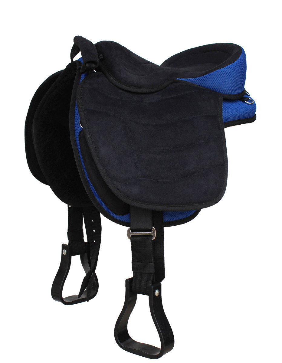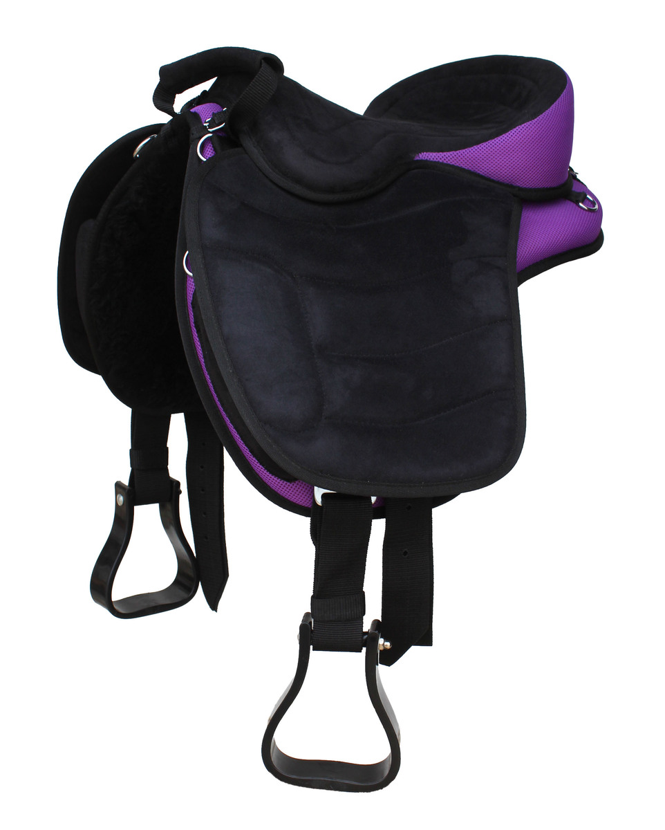 Challenger western endurance treeless lightweight saddle are manufactured from top quality synthetic materials. This Saddle has a flex tree that conforms to horse's back and the rider, eliminating all pressure points and making it a extremely comfortable saddle both rider and horse. Great choice for every day trail riding. Seat detaches with strong Velcro. Completely washable synthetic suede saddle makes it easy to clean. Superior lining underneath to provide extra comfort. Saddle comes complete with pair of composite stirrups.