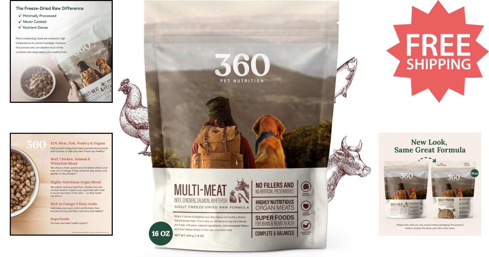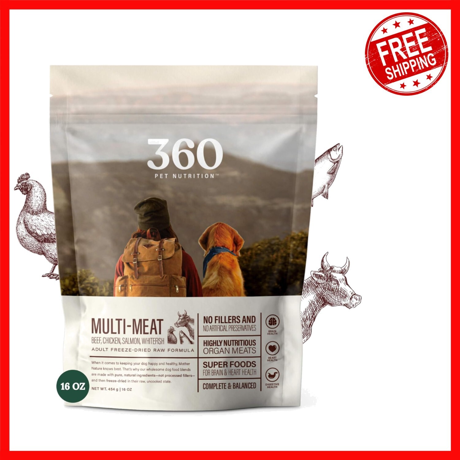Discover our 16 oz. Complete and Balanced Freeze-Dried Dog Food in a multi-meat formula, presented in a convenient resealable bag. Made from pure, natural ingredients, this meal is free from fillers and grains, ensuring your dog receives nutrition as nature intended. The freeze-drying process preserves essential nutrients from meat, poultry, and fish, delivering optimized nutrition daily. Rich in omega-3 fatty acids, it promotes healthy joints, muscles, and a shiny coat. Versatile and easy to serve, it can be given as a complete meal or used as a nutrient-boosting topper. The soft, easy-to-chew kibble is ideal for all dogs. To ensure fast and reliable delivery, we work with multiple fulfillment partners and suppliers. Depending on availability and location, your order may ship from different warehouses or arrive in packaging that varies from item to item. Tracking details are typically provided shortly after shipment, and customer satisfaction remains our top priority.