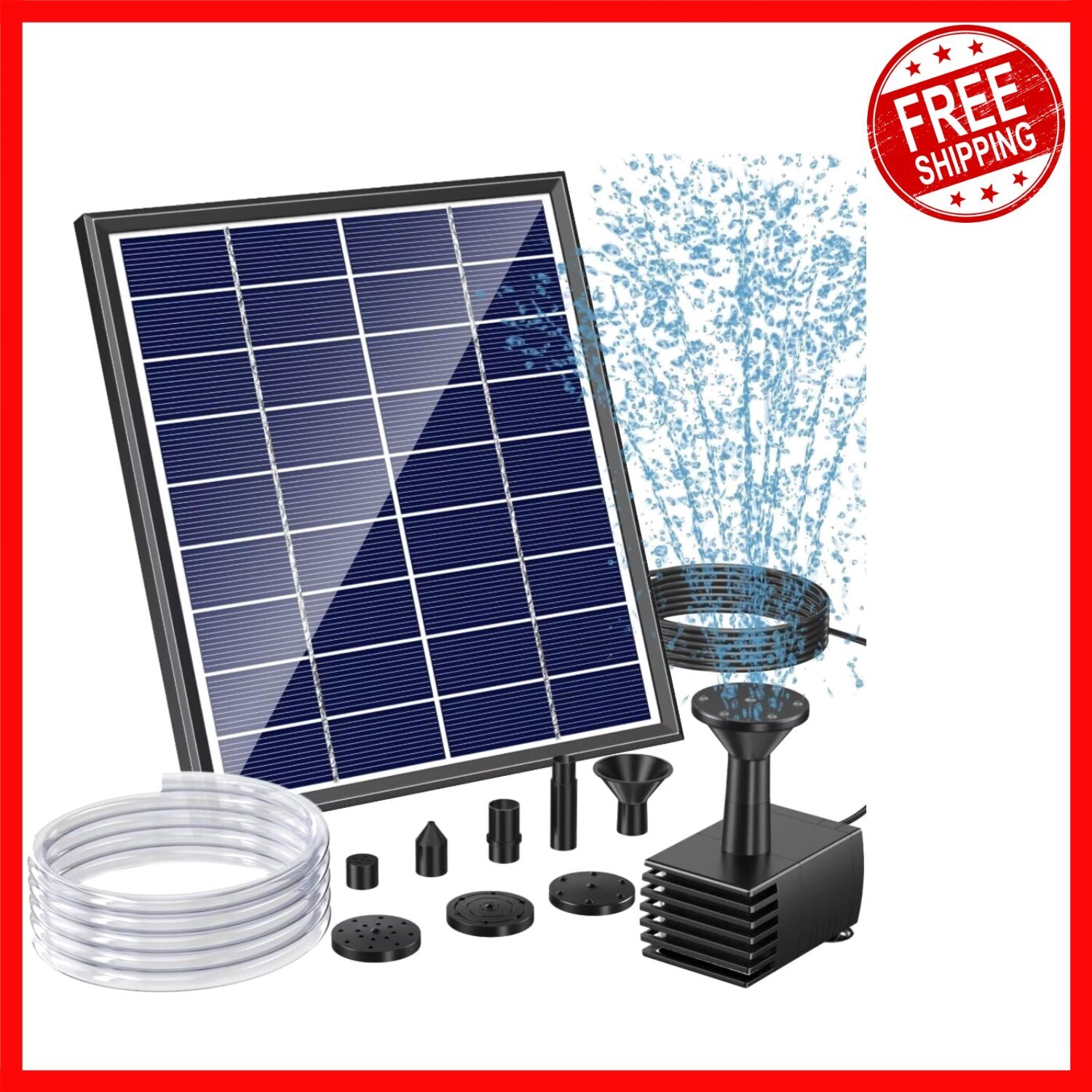 Upgrade your outdoor decor with our 6W Glass Solar Fountain, featuring a durable, high-transparency glass panel and Grade A+ solar cells for optimal sunlight conversion and a stable water spray. Built-in water shortage protection and included filters extend pump lifespan. Customize your water feature with five nozzles and four feet of water pipe, creating waterfalls, streams, or gardens. Easy to install and adjustable to any angle, this pump is perfect for DIY projects and outdoor settings. Equipped with a 60-day and a 1- for peace of mind. Please remember to keep the pump clean and ensure the solar panel is unobstructed for best performance. To ensure fast and reliable delivery, we work with multiple fulfillment partners and suppliers. Depending on availability and location, your order may ship from different warehouses or arrive in packaging that varies from item to item. Tracking details are typically provided shortly after shipment, and customer satisfaction remains our top priority. Please note that due to carrier policies and regional regulations, certain items may not be eligible for delivery to specific states or territories.