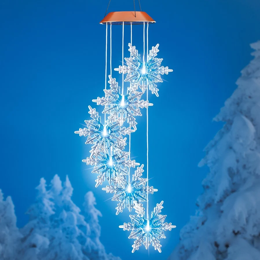 - Solar LED Wind Chime Christmas Winter Snowflakes Hanging Mobile Yard Decoration