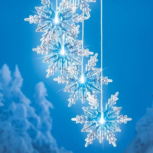 You'll love seeing these beautiful snowflakes sparkling in your yard, day and night. Each crystal clear snowflake dazzles in the sunshine and shines automatically at night with blue, solar-powered LED lights.
