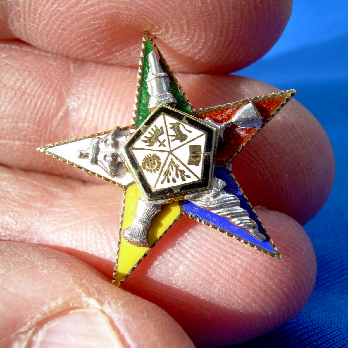 SOLID 14K GOLD MASONIC PIN ART DECO ORDER OF THE EASTERN STAR BROOCH Enamel 1920