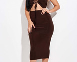 - Solid Halter Neck Midi Dress With Criss Cross Front And Cutout