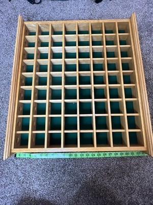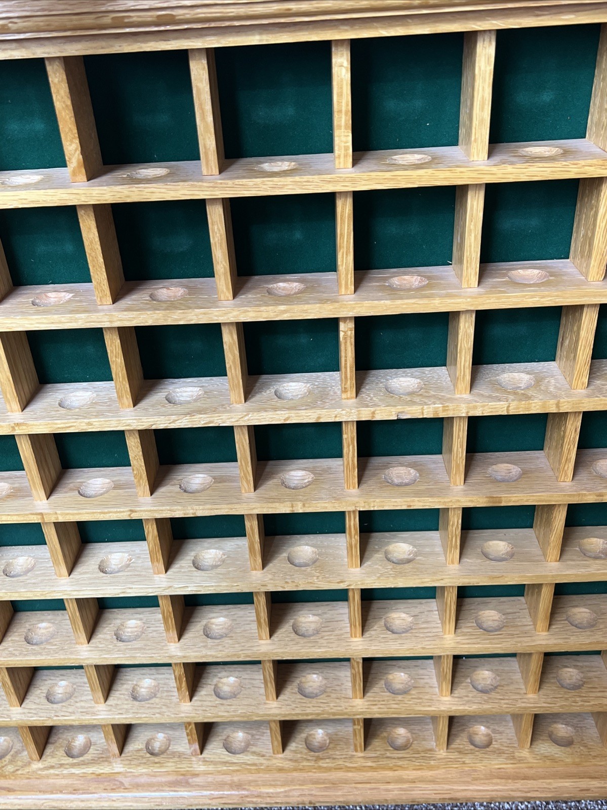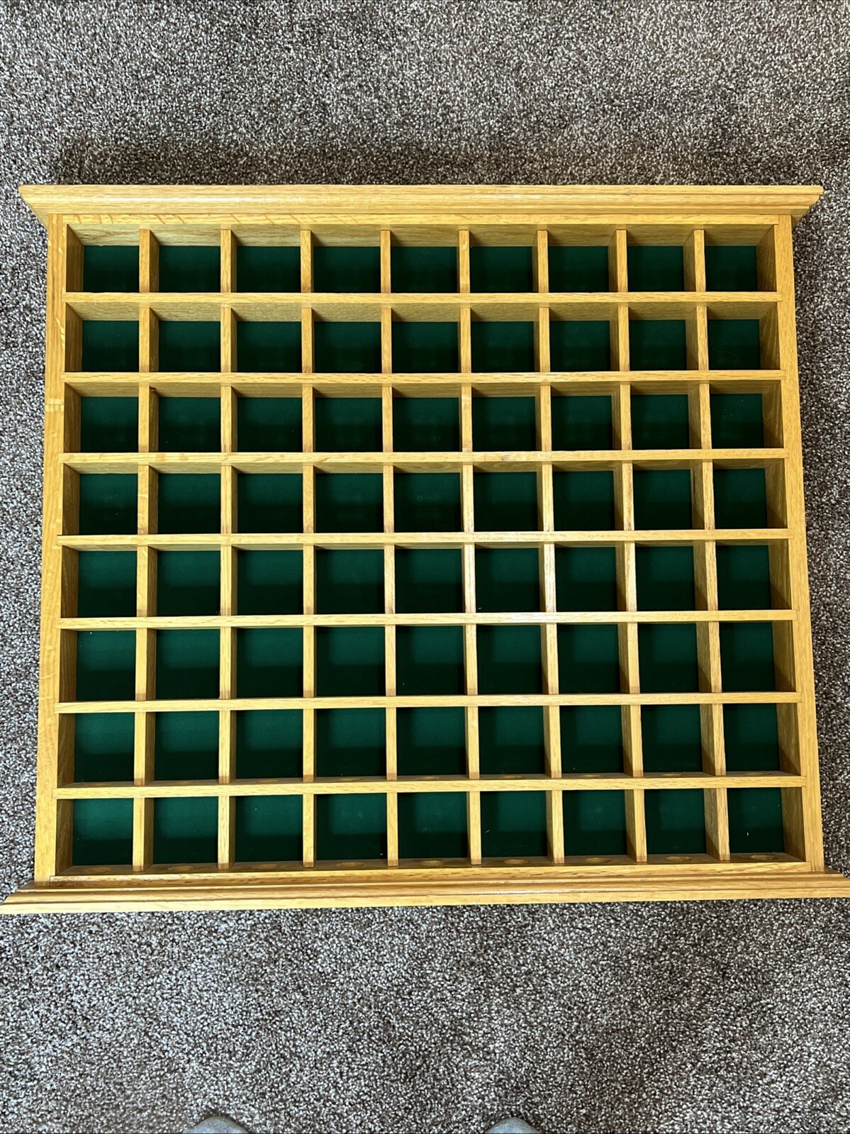 - Solid Oak Golf Ball Display Case Shelf Cabinet Green Felt Back Holds 72 Balls