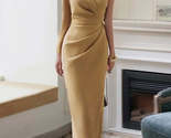 - Solid Slimming V Neck Long Sleeve High Waist Long Dress