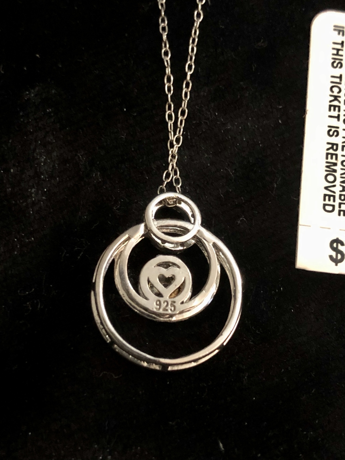 Solid Sterling Silver Genuine Diamond Triple Circle 18" Pendant Necklace - NWT