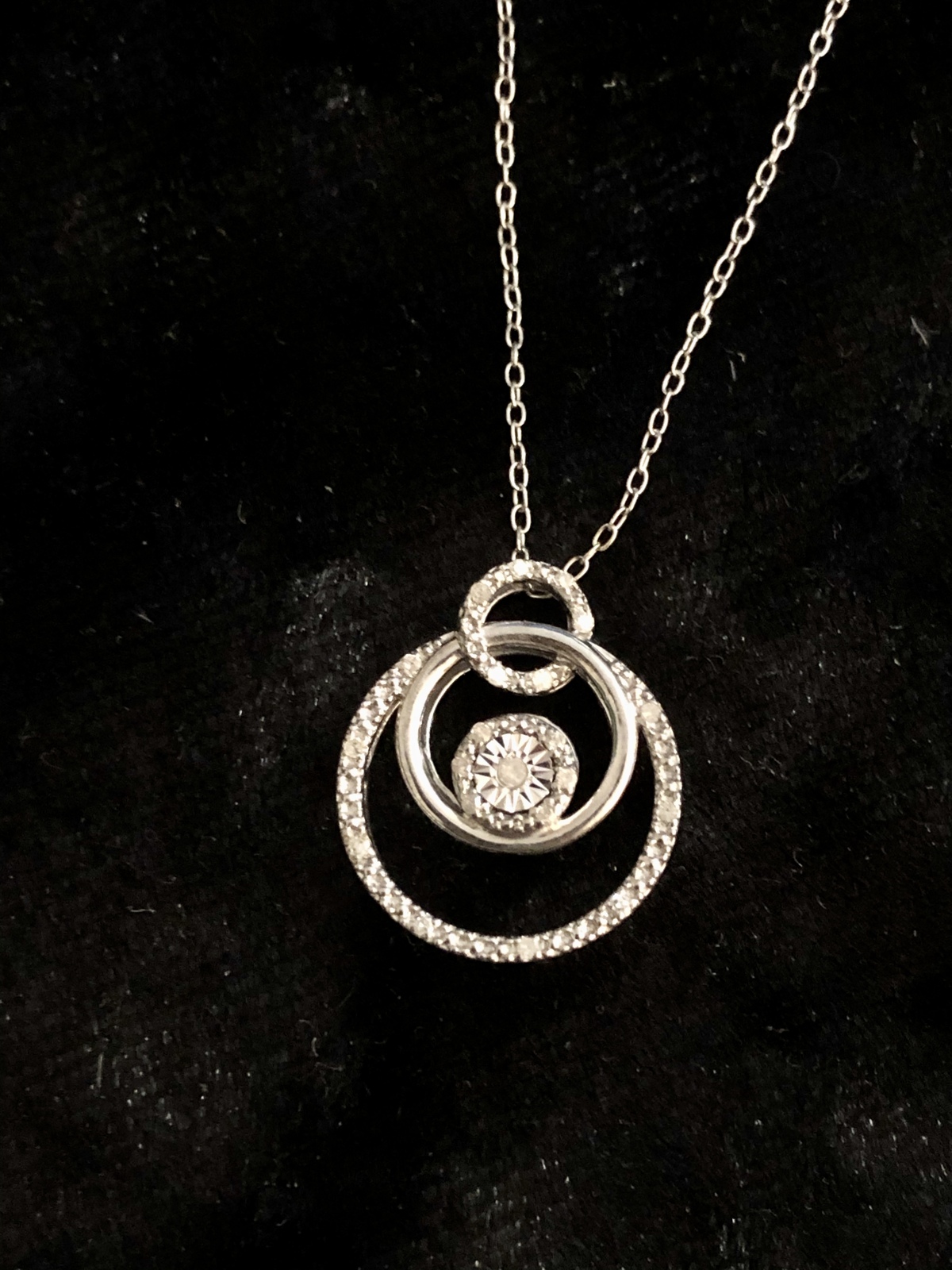 - Solid Sterling Silver Genuine Diamond Triple Circle 18" Pendant Necklace